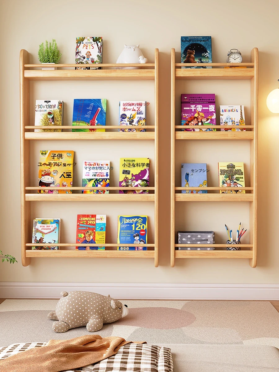 人気の子供用天然木製ウォールシェルフ:壁掛け式多層収納ラック!絵本や小物もすっきり整頓、薄型デザインで省スペース。扉の裏にも取り付け可能なコンパクト本棚!