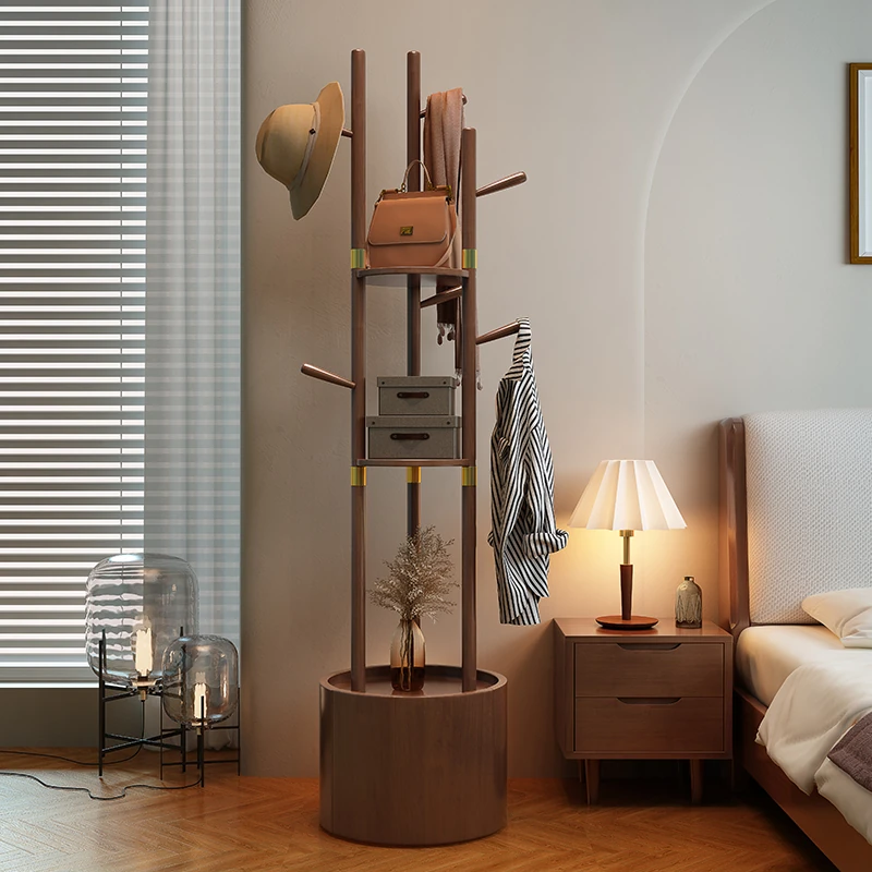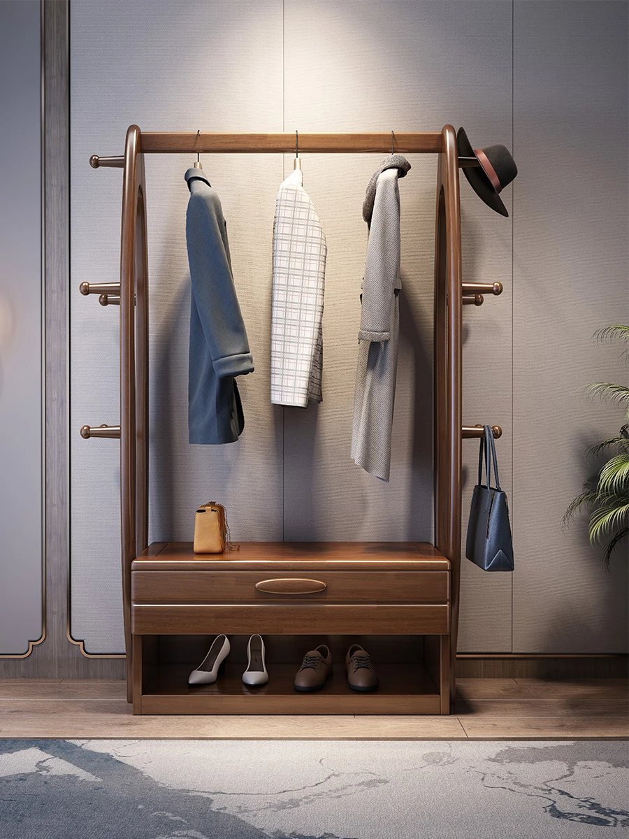天然木製多機能スタンド-おしゃれな玄関収納からリビングの衣類整理まで、どんなシーンにも溶け込む!用途多彩なフロアスタイルで、お部屋の収納力をアップ。