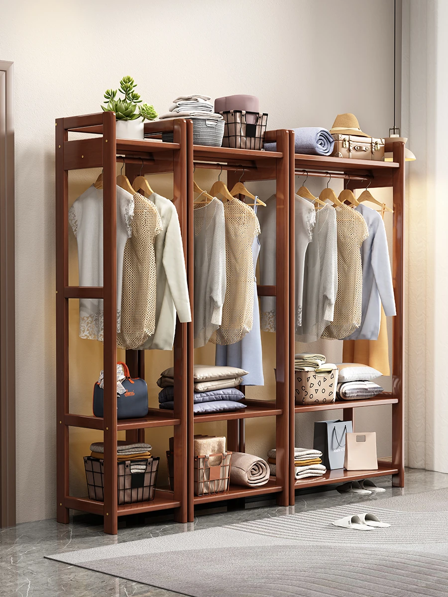 北欧スタイル本格木製多機能ハンガーラック - 小型寝室に最適な省スペース収納ソリューション!