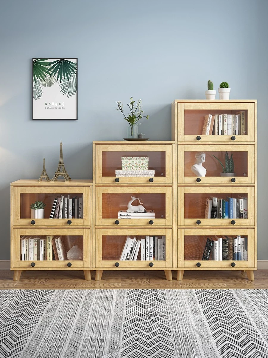 Nordic Solid Wood Bookshelf with Glass Doors – Simple Storage Rack for Home, Bedroom, and Kids' Room – Stylish Organizer for Your Living Space