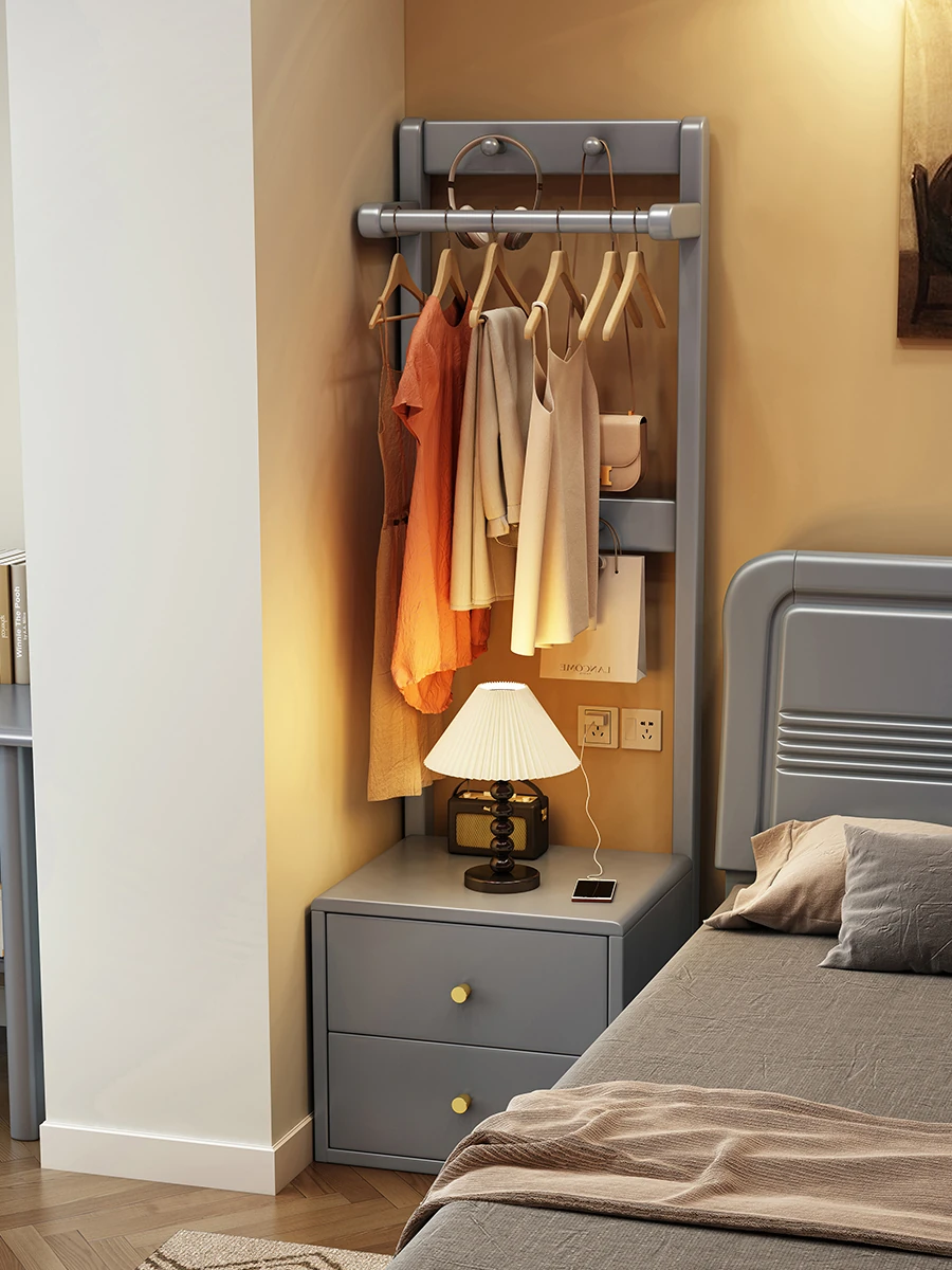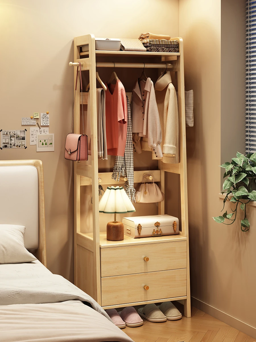Solid Wood Coat Rack and Nightstand Combo - Simplified Clothing Organizer and Easy-Hang Rack for Small Spaces, Perfect for Bedroom Corners and Bedside Storage