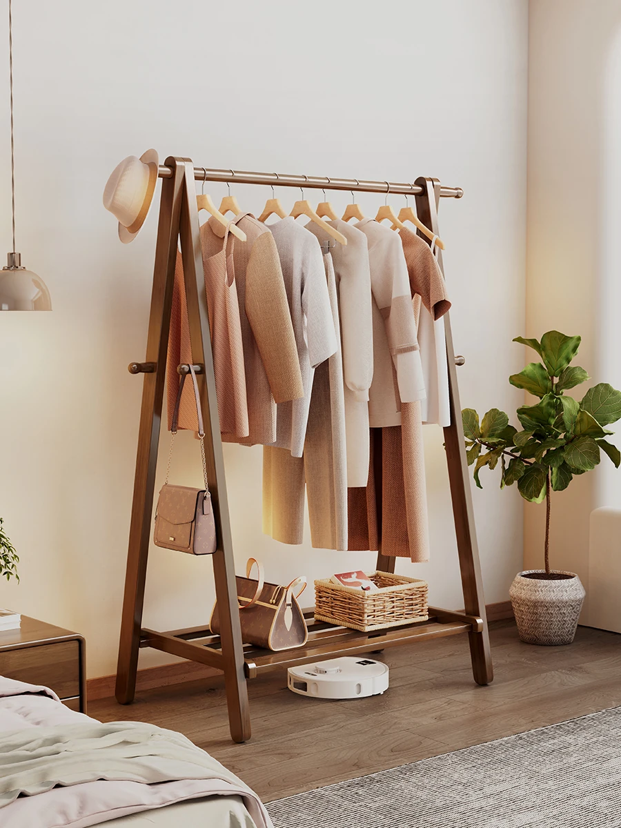 Stylish Minimalist Solid Wood Coat Rack - Versatile Bedroom and Living Room Organizing Stand for Clothes and Accessories, Perfect for Home Use