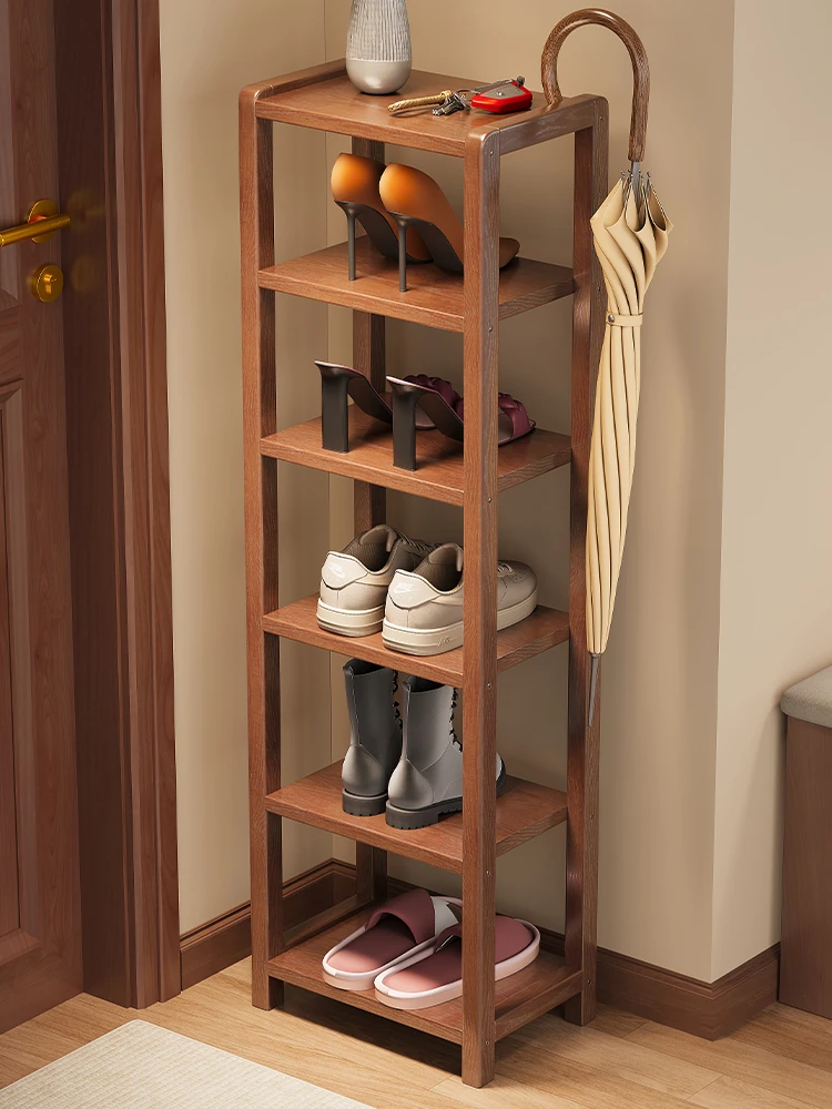 Elegant Solid Wood Shoe Rack - Multi-Layer Narrow Entryway Storage Solution for Small Spaces - Stylish and Functional Organizer for Shoes at Home