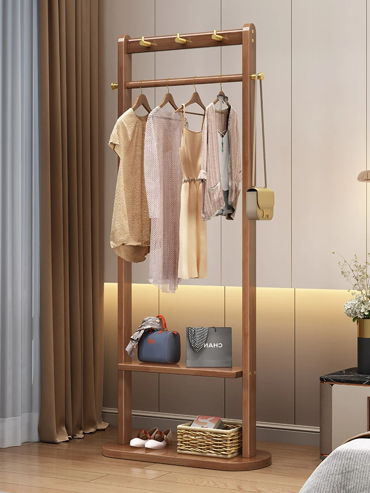 Solid Wood Multi-Functional Coat Rack - Simple and Elegant Design for Bedroom and Living Room Storage Solutions
