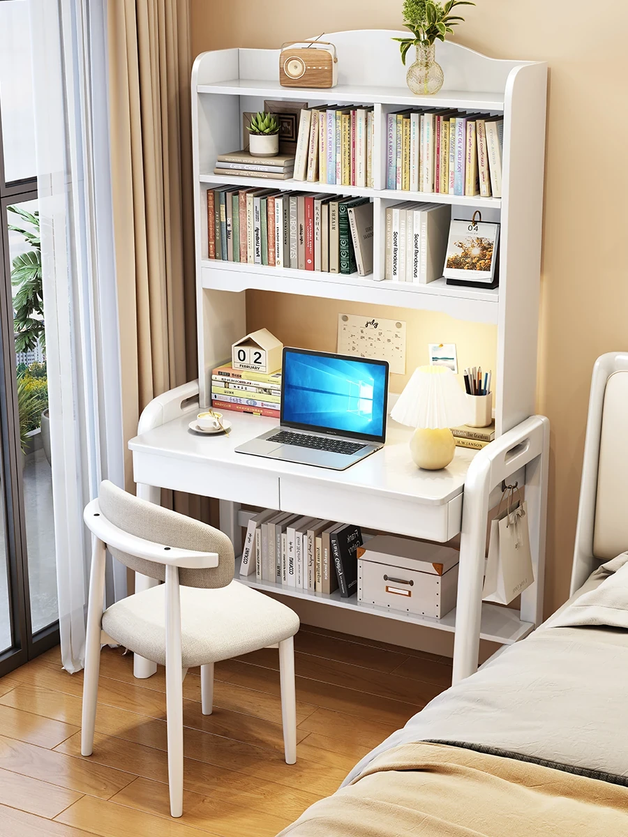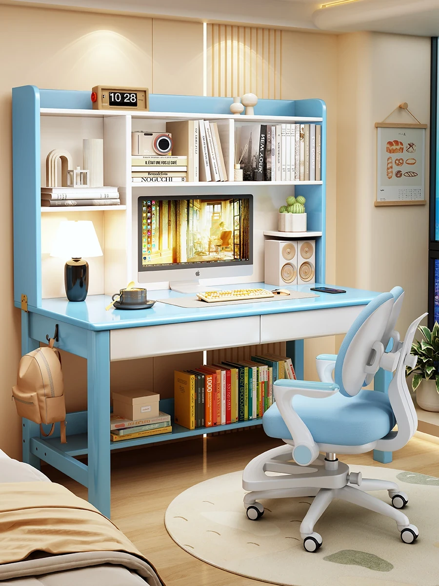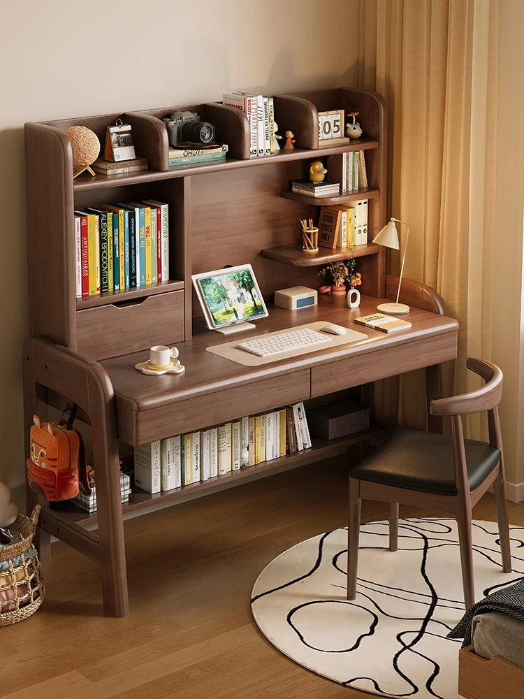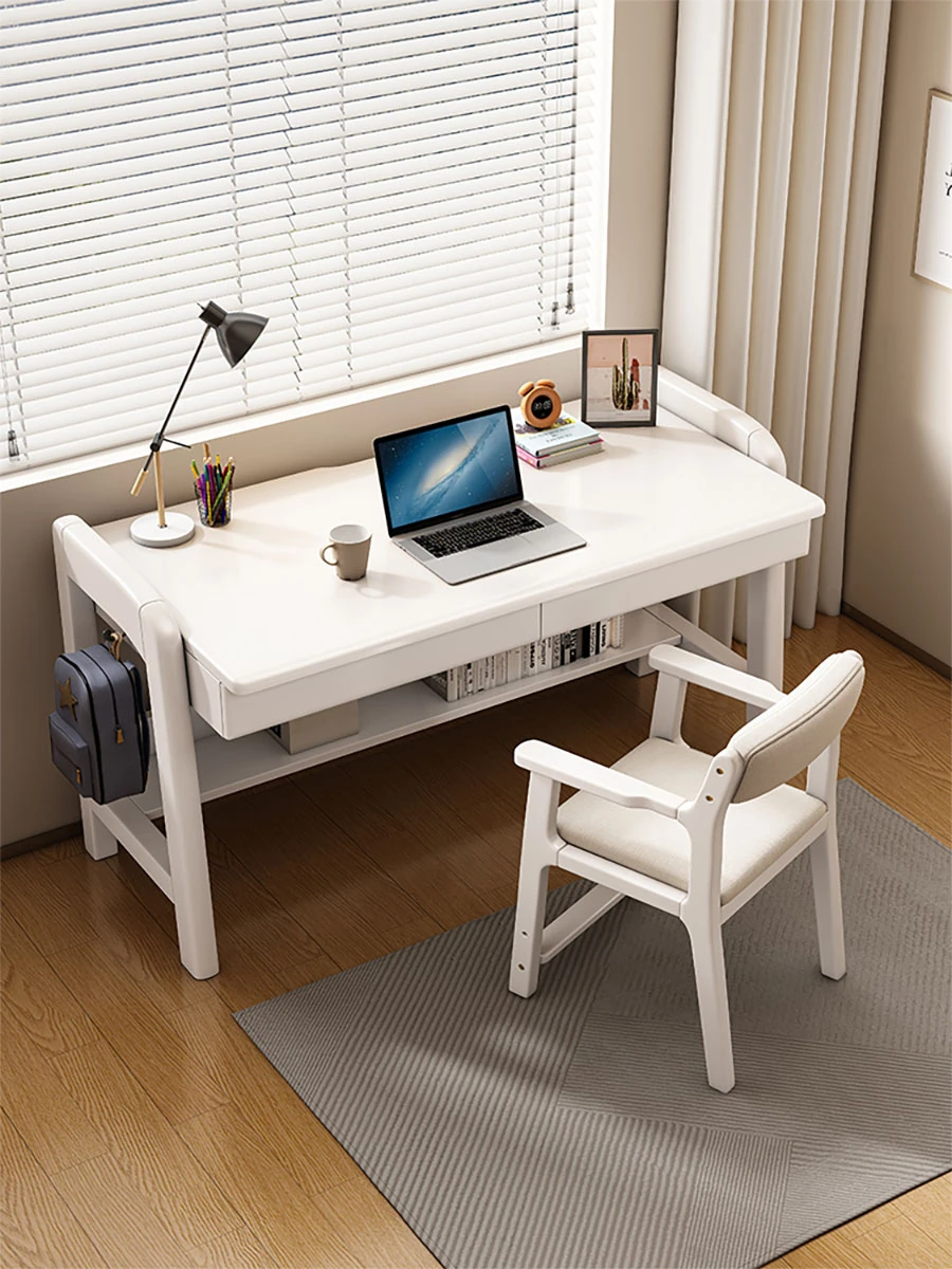 Solid Wood Minimalist Study Desk & Bookshelf Combination - Adjustable Computer Desk for Home, Children's Learning, Bedroom, and Student Writing Station