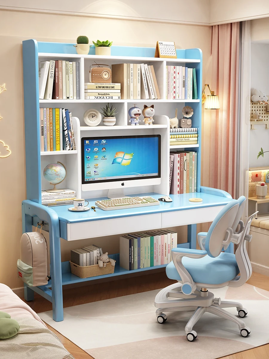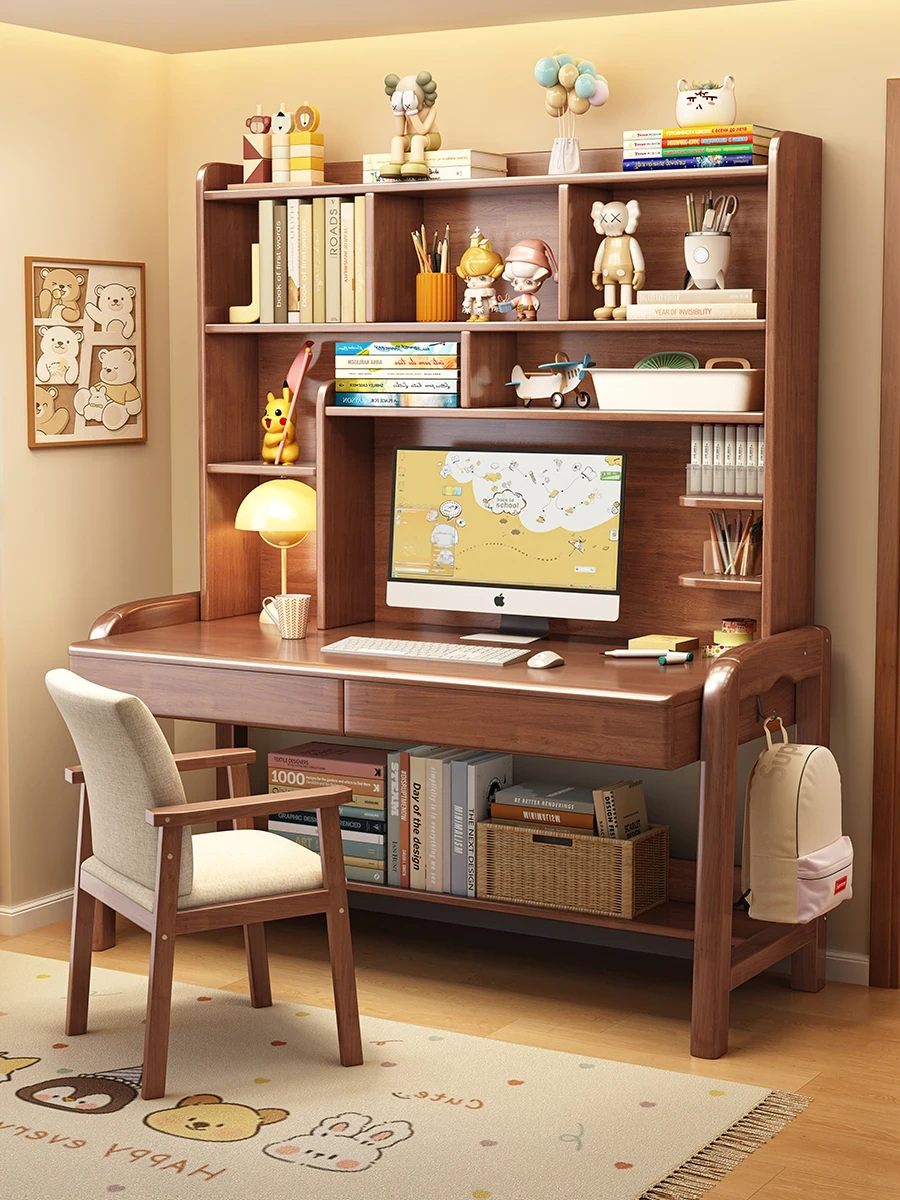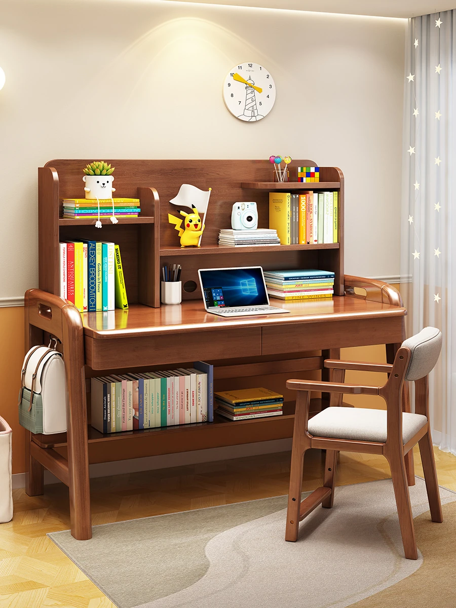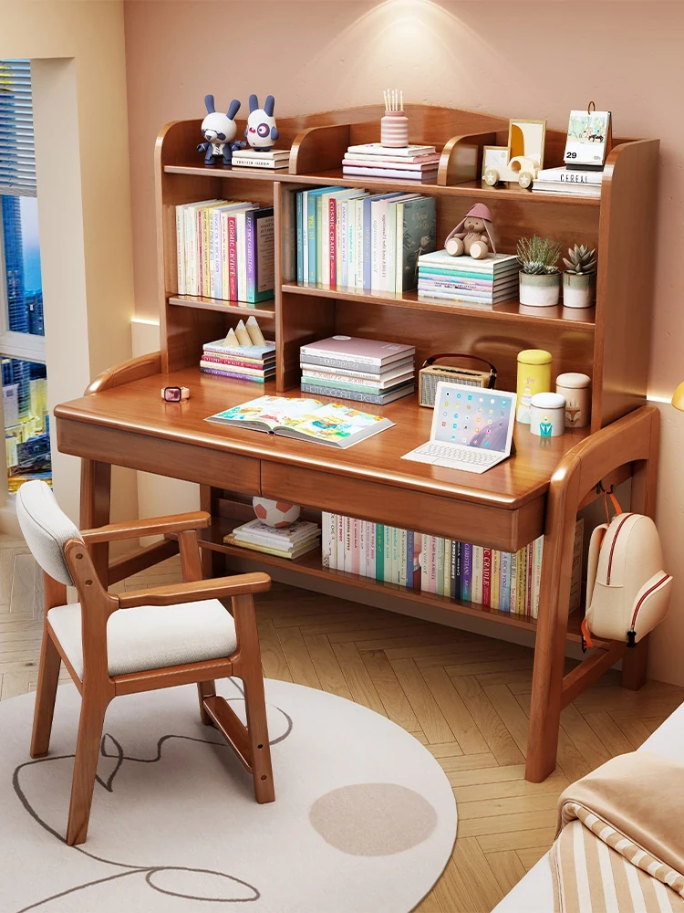 Solid Wood Children’s Study Desk with Bookshelf – Multifunctional Learning Table for Middle School Students, Perfect for Home and Bedroom Use, Ideal Writing and Computer Desk