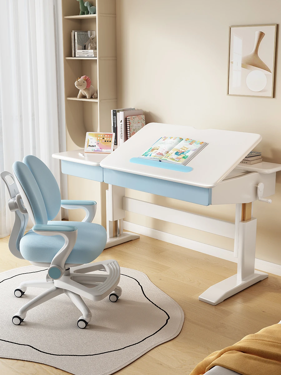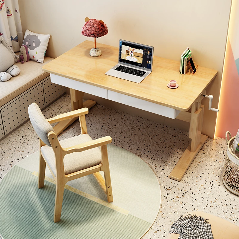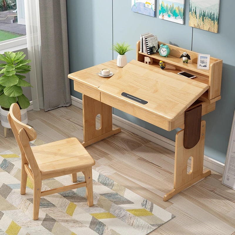 Kids' Adjustable Study Desk – Simple Solid Wood Writing Table Set for Home, Perfect for Elementary and Middle School Students