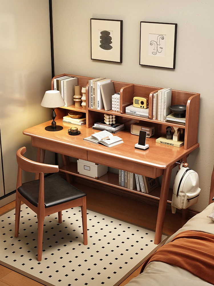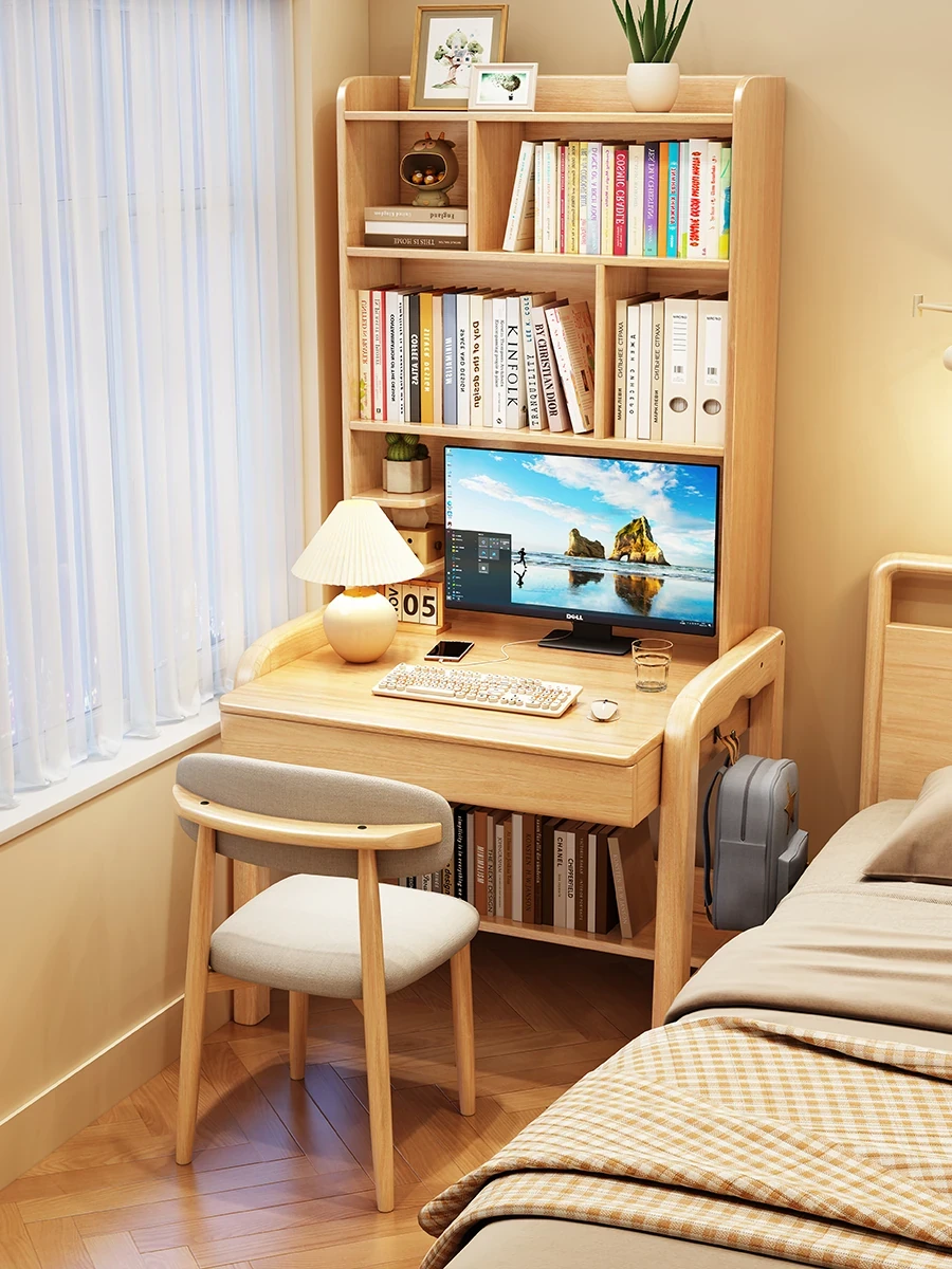 Minimalist Solid Wood Study Desk with Bookshelf - Combined Writing Table for Home, Bedroom, Kids' Study, and Student Computer Use