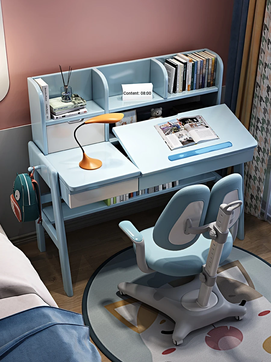 "Adjustable Solid Wood Children's Study Desk and Bookshelf Combo – Elevate Learning with a Versatile, Height-Adjustable Table Perfect for Home and Bedroom Use"