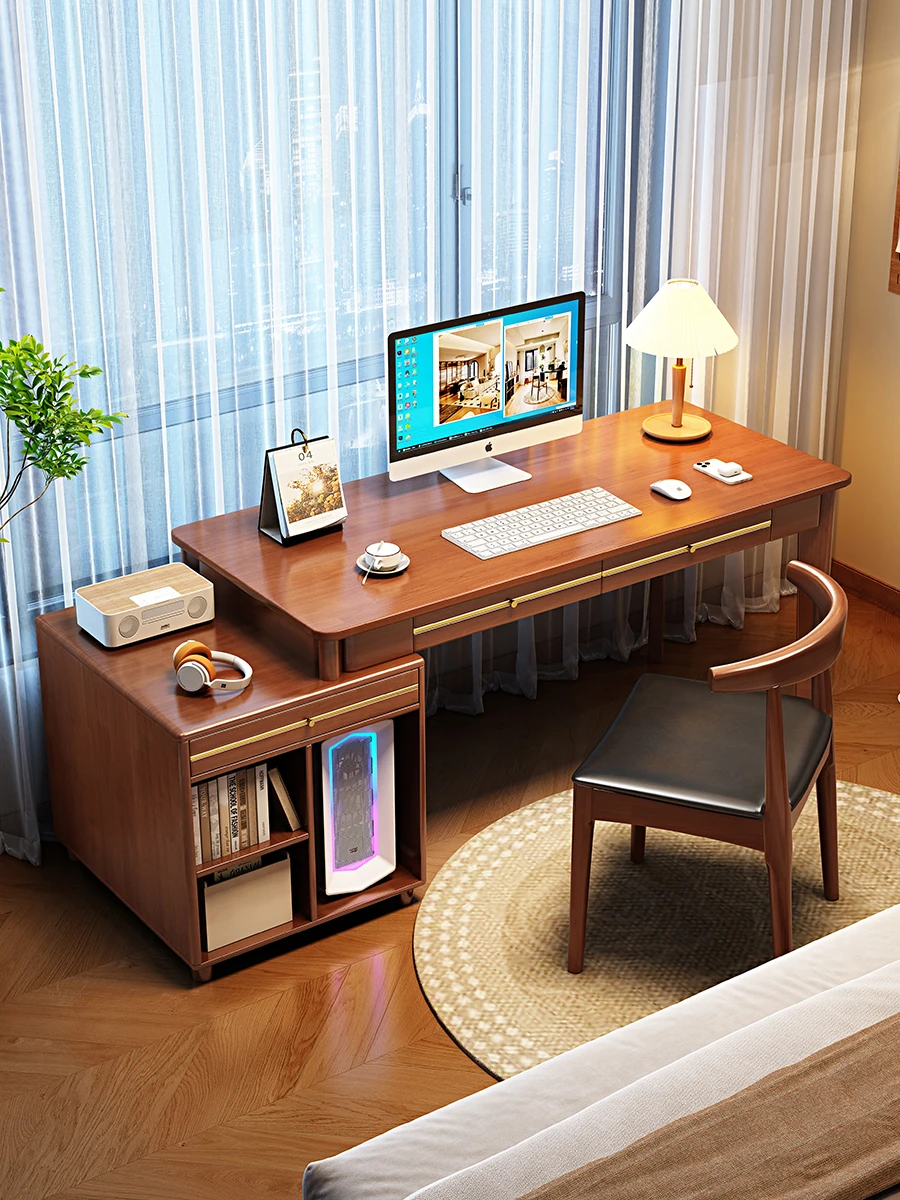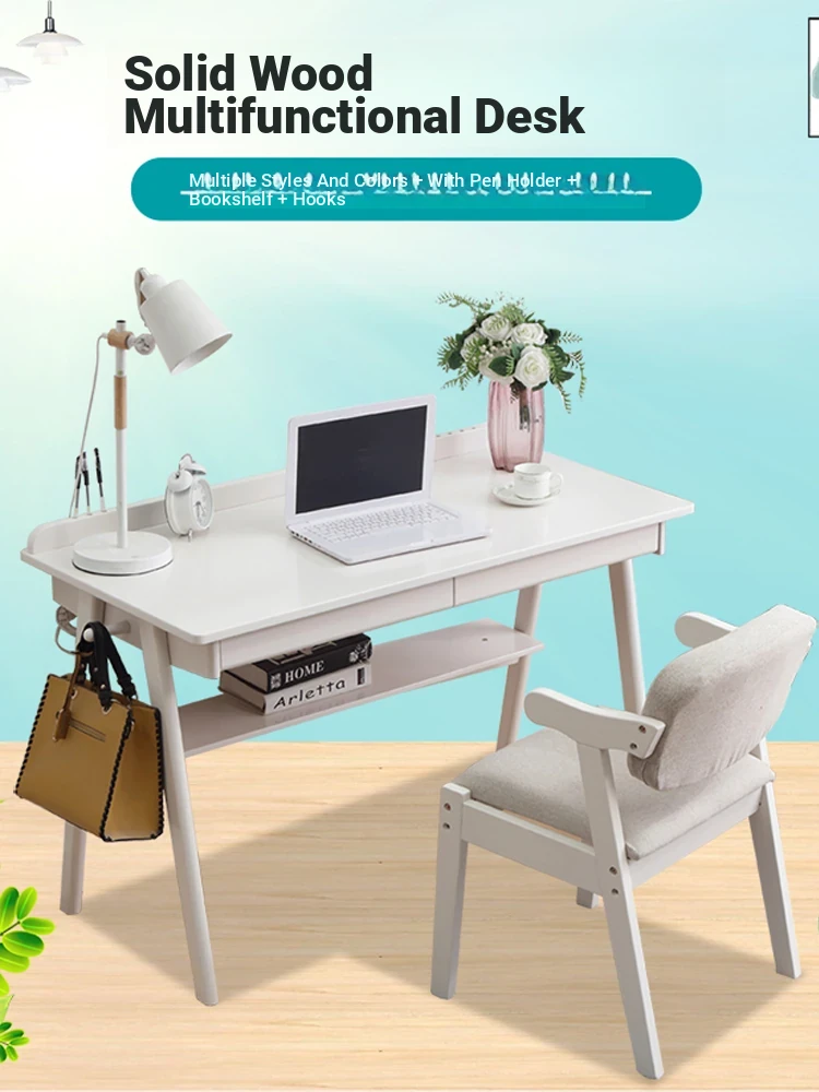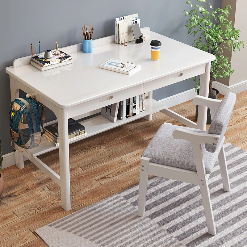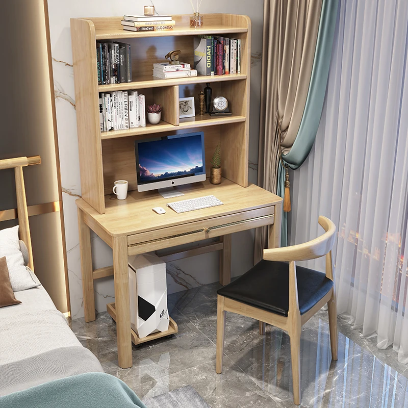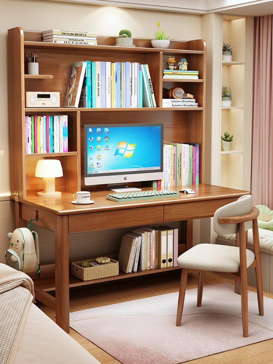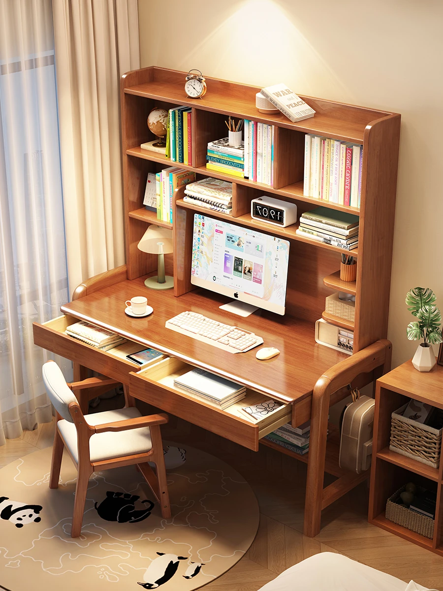 Solid Wood Desk with Bookshelf - Versatile Writing Table for Home Office, Bedroom, and Kids' Study Room, Perfect for Built-in Storage and Stylish Workspaces