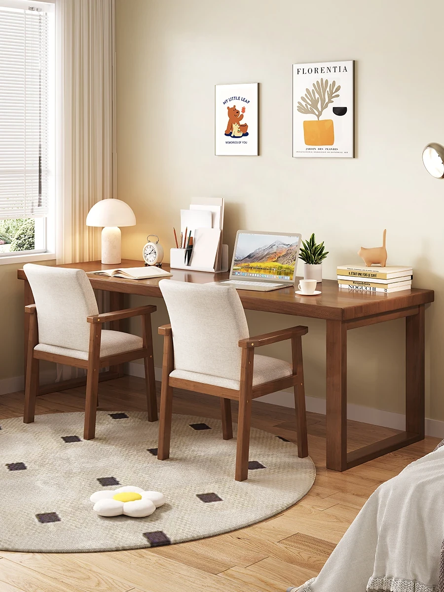 Spacious Minimalist Solid Wood Double Study Desk for Living Room – Versatile Long Table for Four, Perfect for Home Office and Collaborative Workspace