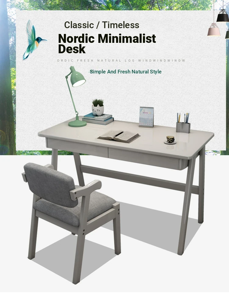 Minimalist Solid Wood Writing Desk - Versatile Computer Office Table for Home, Bedroom, and Kids. Perfect Study Desk with Chair for Elementary Students to Enhance Learning Experience!