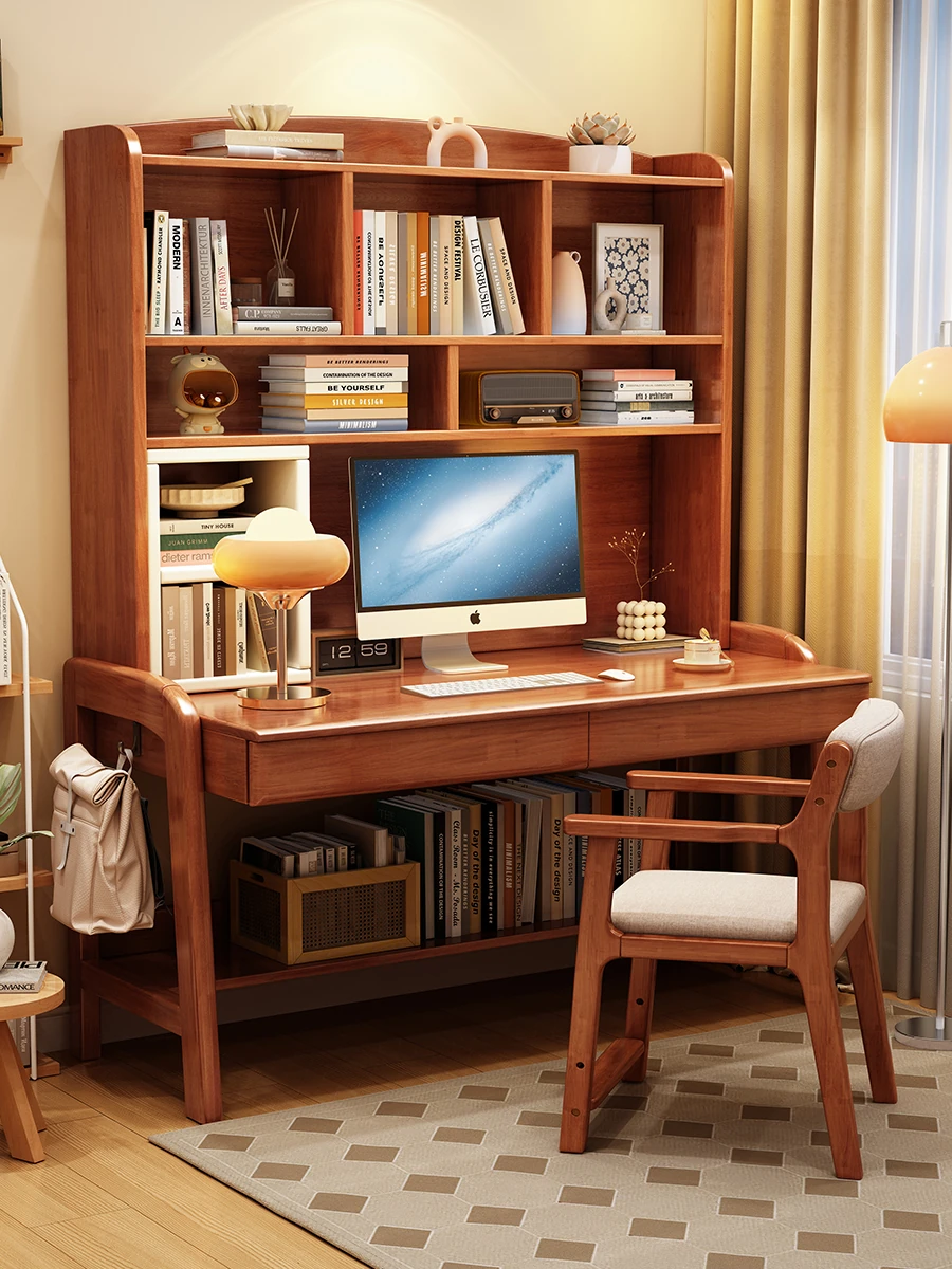 Multifunctional Solid Wood Computer Desk & Bookshelf Combo – Stylish Minimalist Home Office Desk for Bedrooms, Children's Study, and Student Writing Desk – Perfect for Productivity and Organization!