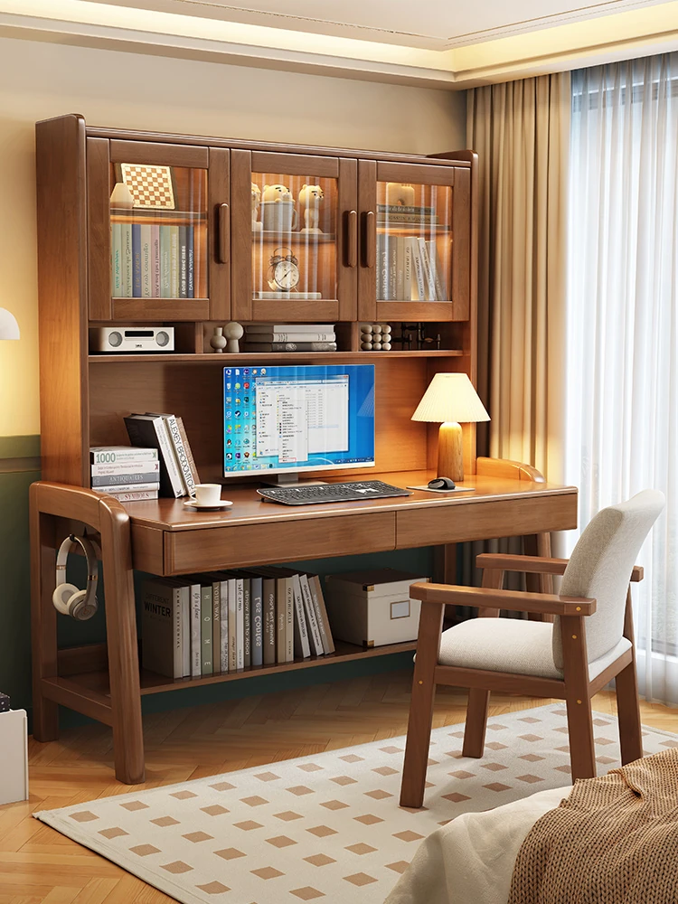 Solid Wood Study Desk with Bookshelf – Elegant Writing Table for Middle School Students, Home Study, Bedroom, and Office Use – A Perfect Blend of Style and Functionality