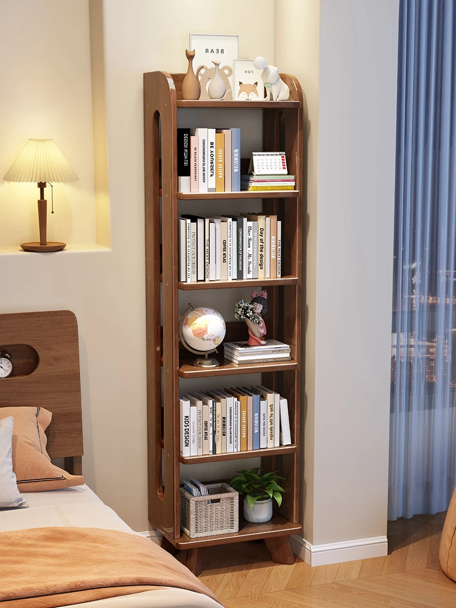 360-Degree Rotating Solid Wood Bookshelf – Stylish Small Bookcase for Home Use, Space-Saving Floor Storage Rack for Living Room