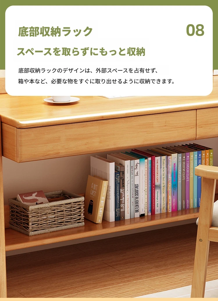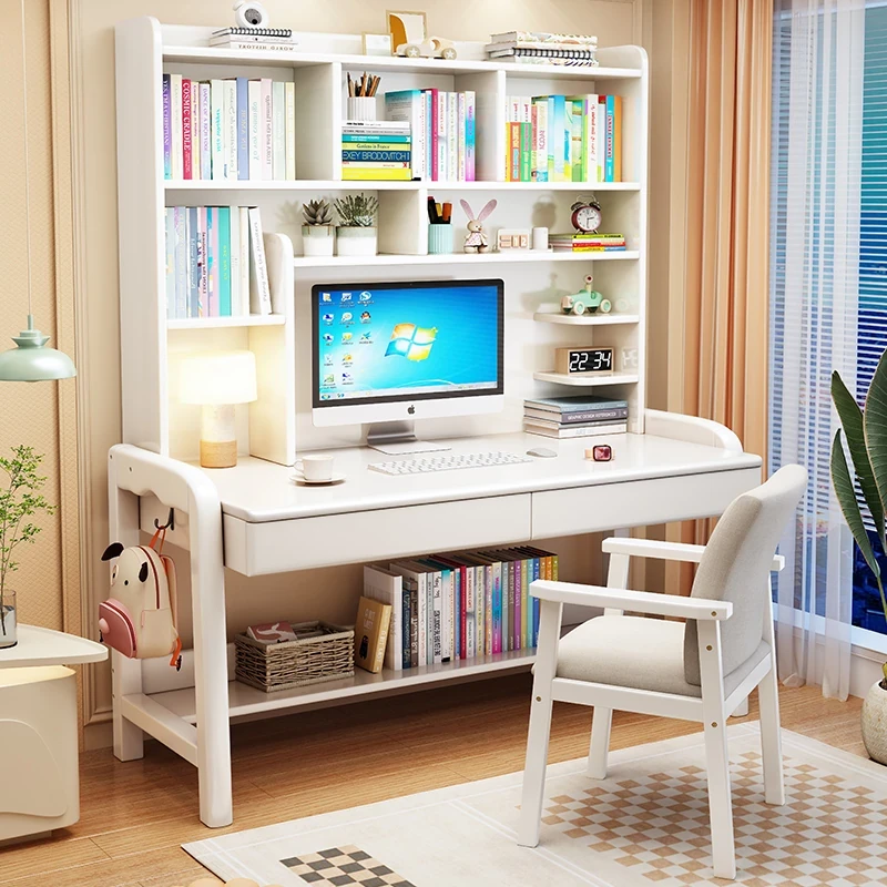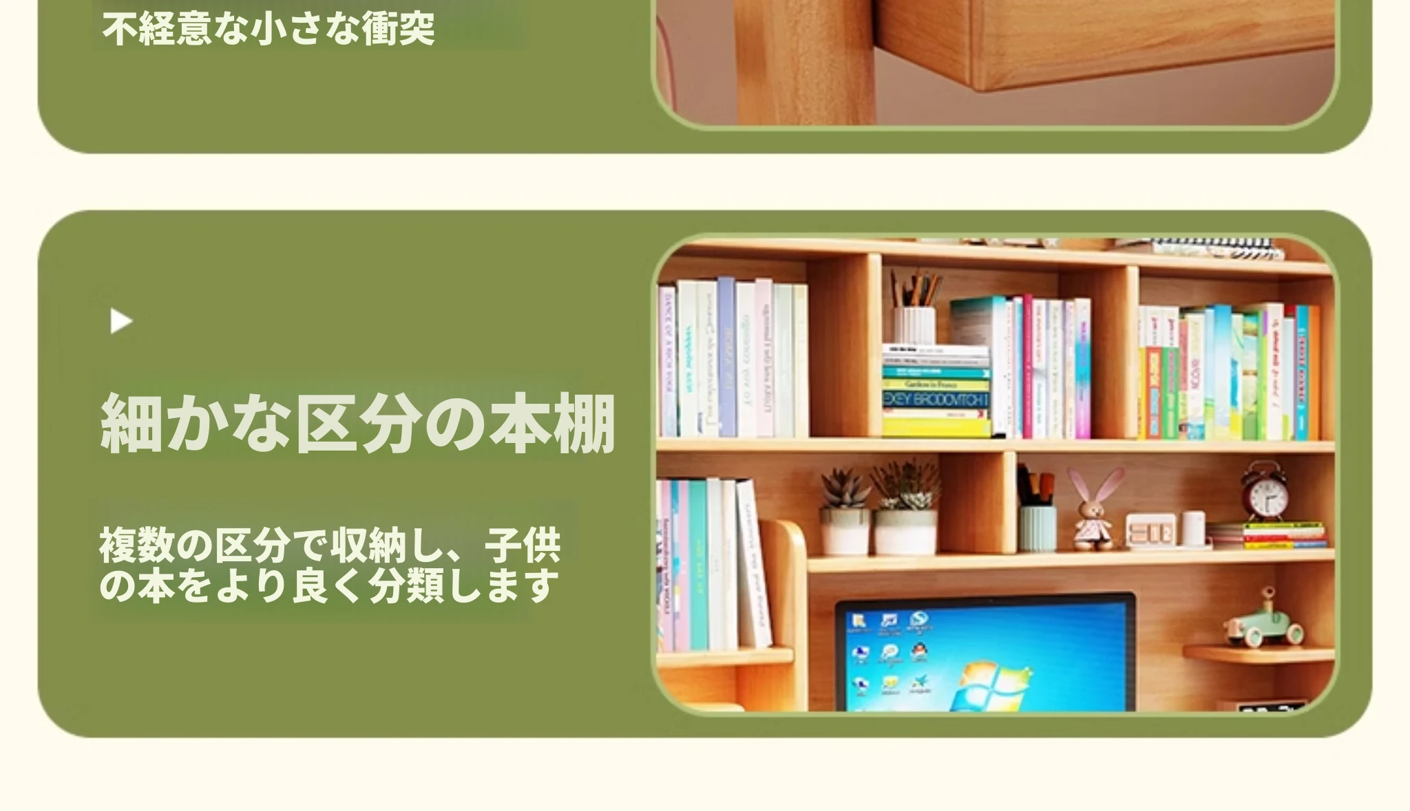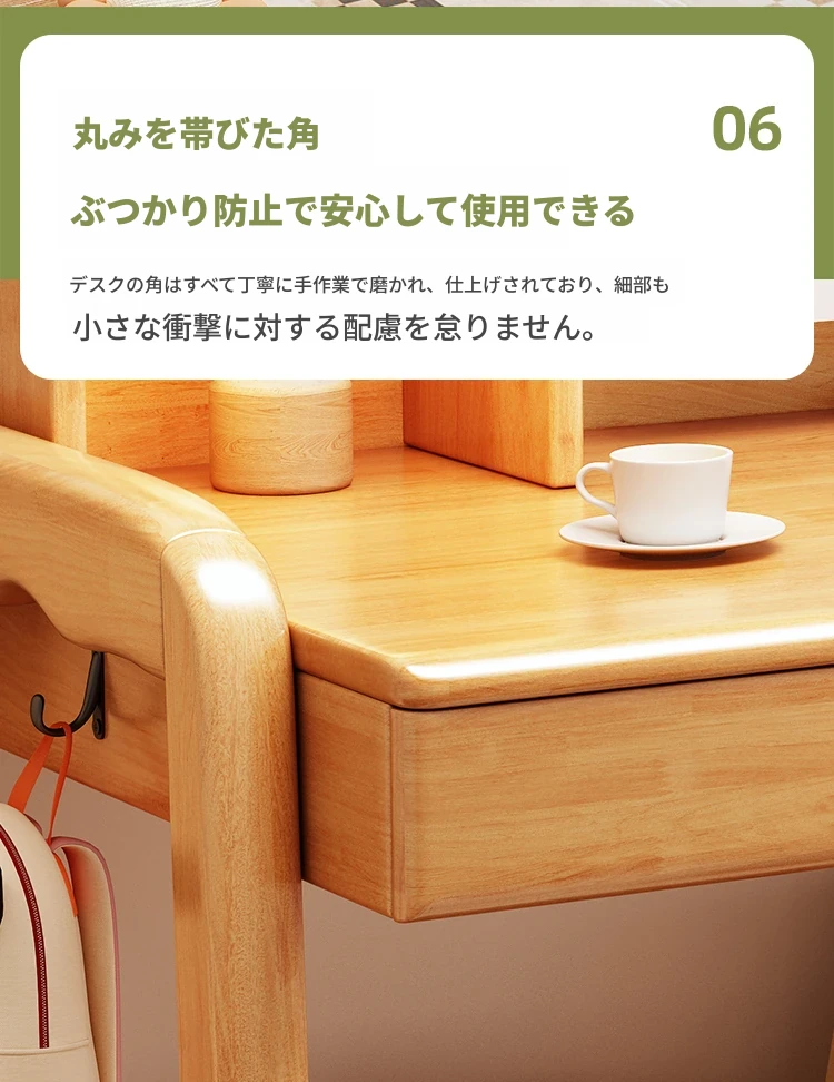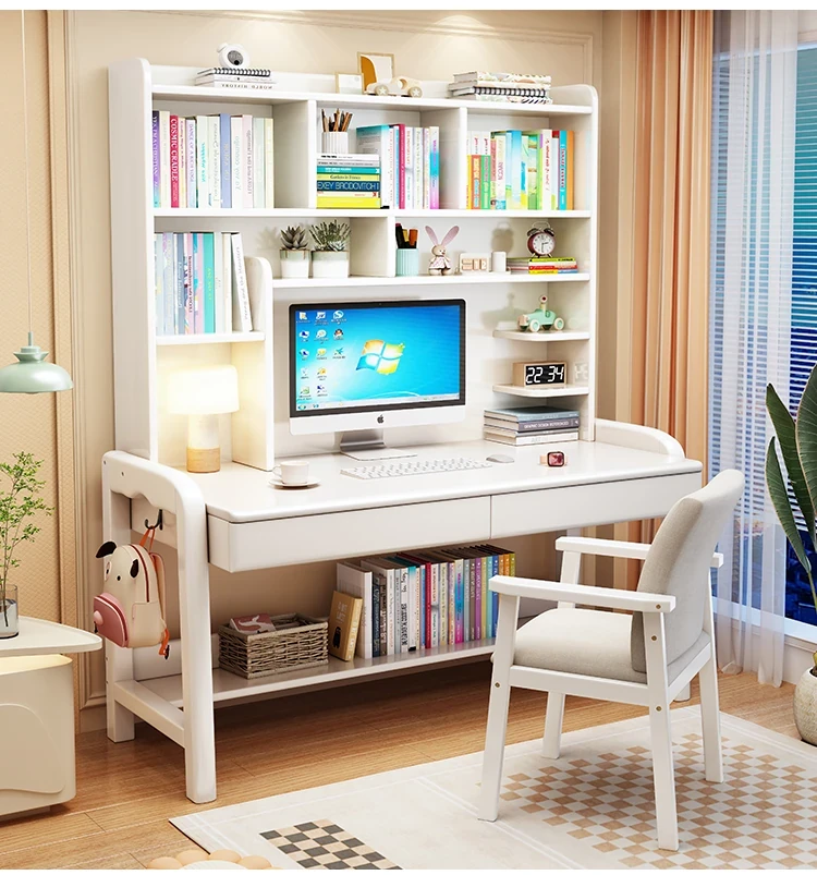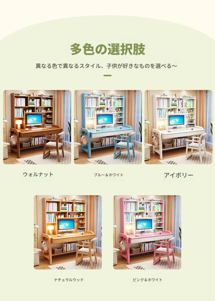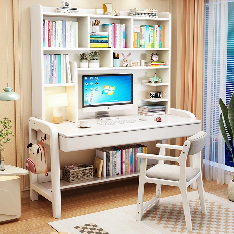 【成长期の子どもに最適】天然木製一体型の書架付き学習デスク - 家庭用学生向け昇降機能付き書斎・オフィスコンピューターテーブル