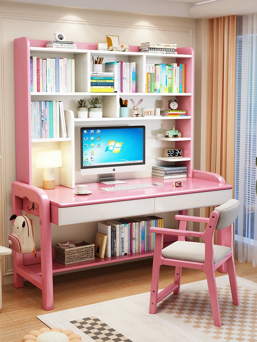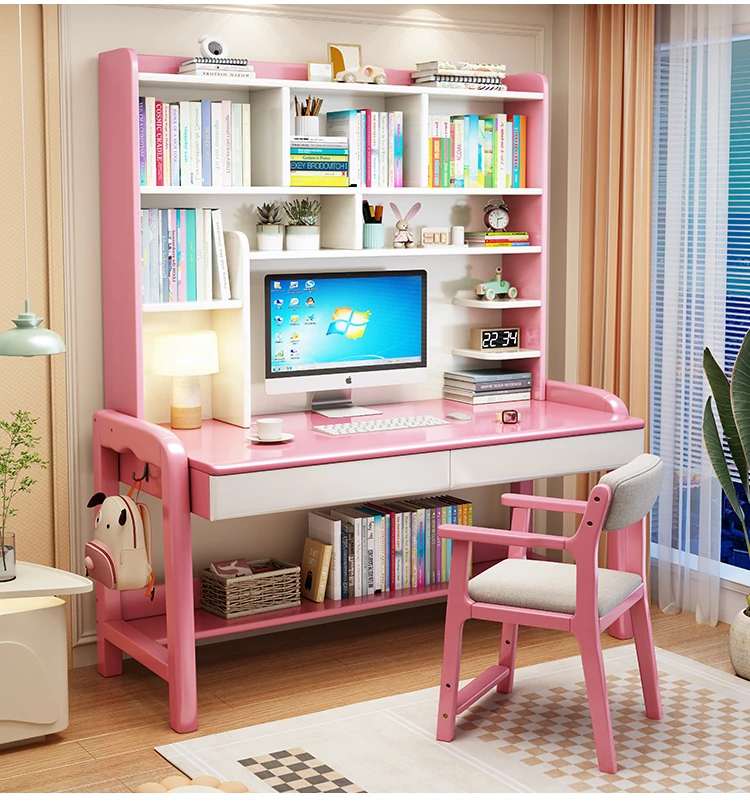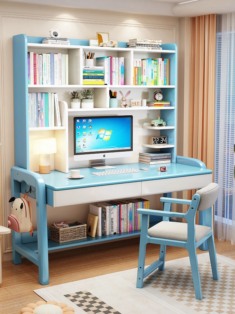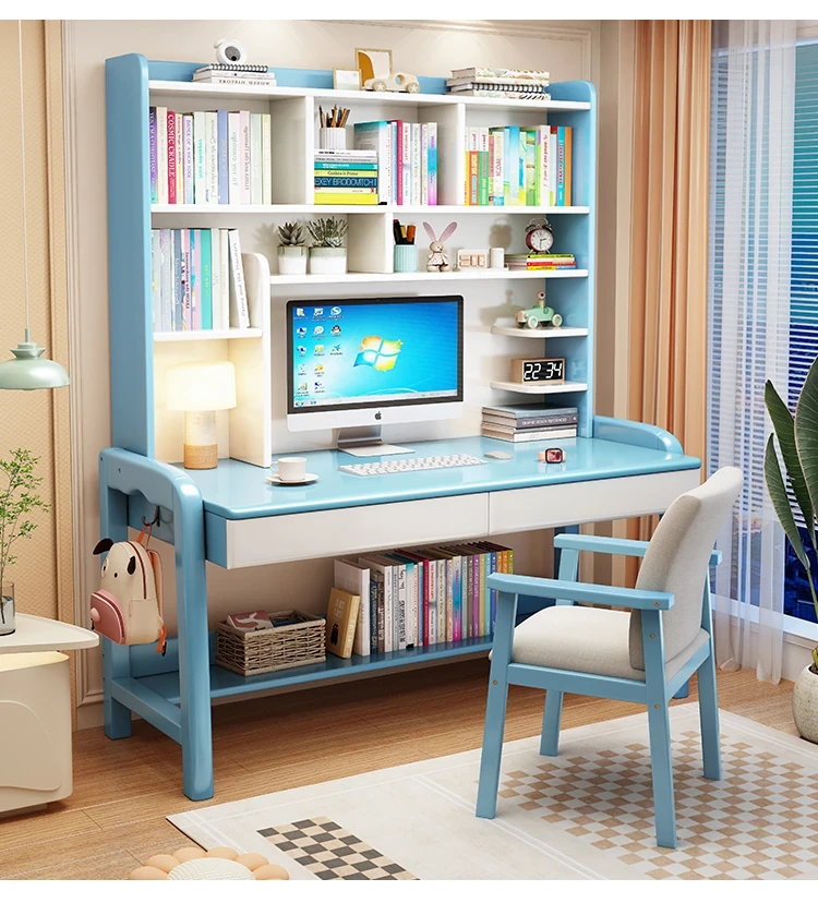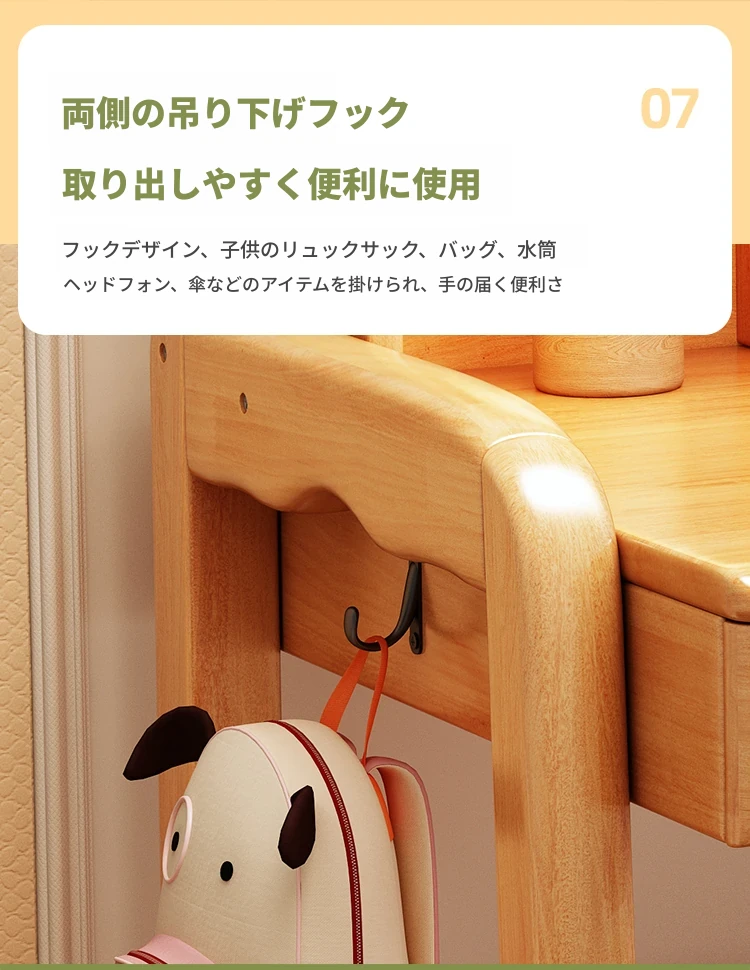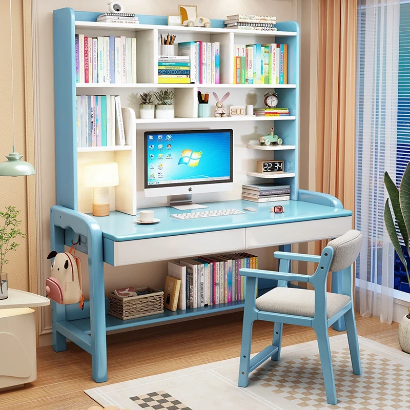 【成长期の子どもに最適】天然木製一体型の書架付き学習デスク - 家庭用学生向け昇降機能付き書斎・オフィスコンピューターテーブル