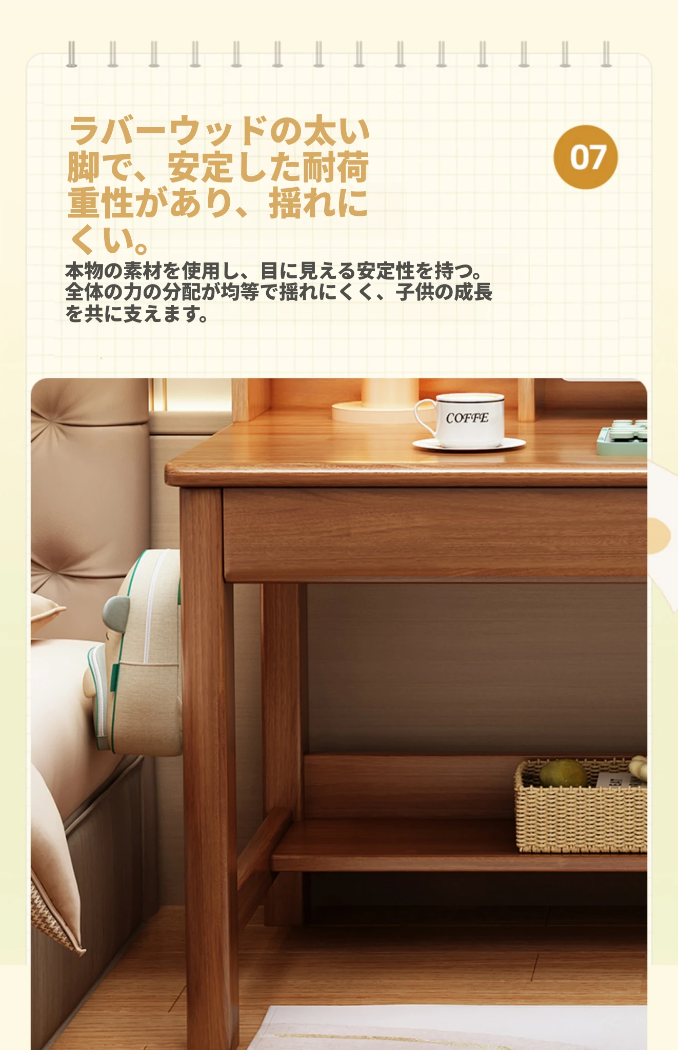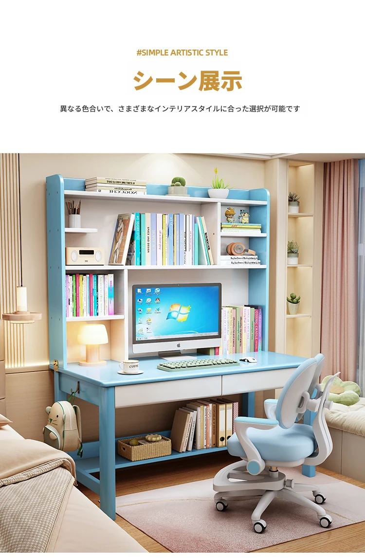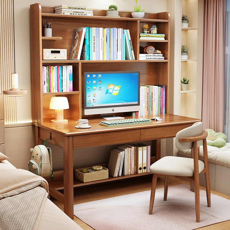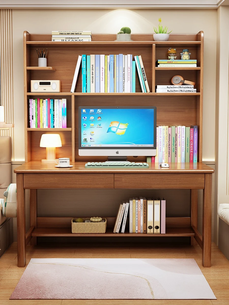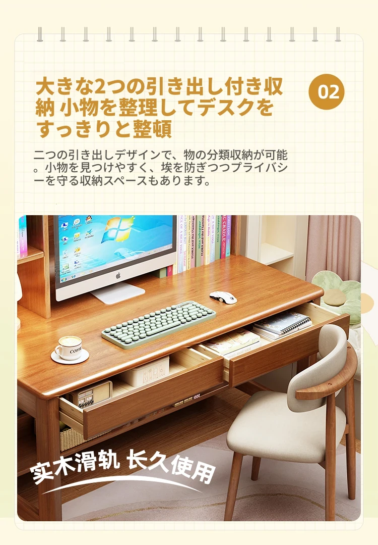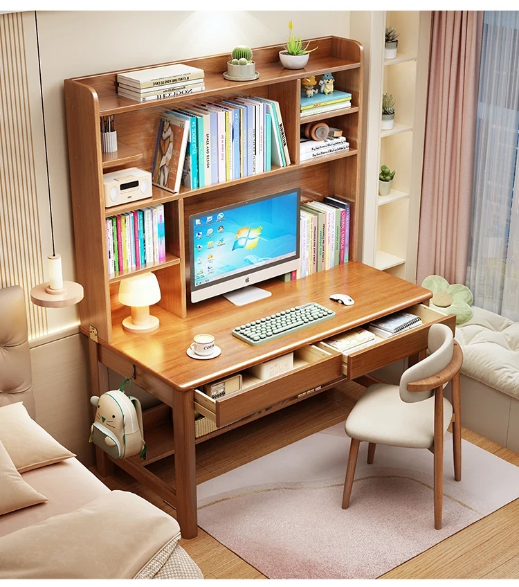 北欧スタイル天然木製学習デスク&シェルフ一体型セット - 学生や家庭用に最適、小スペースにもぴったりの多機能コンピュータデスク