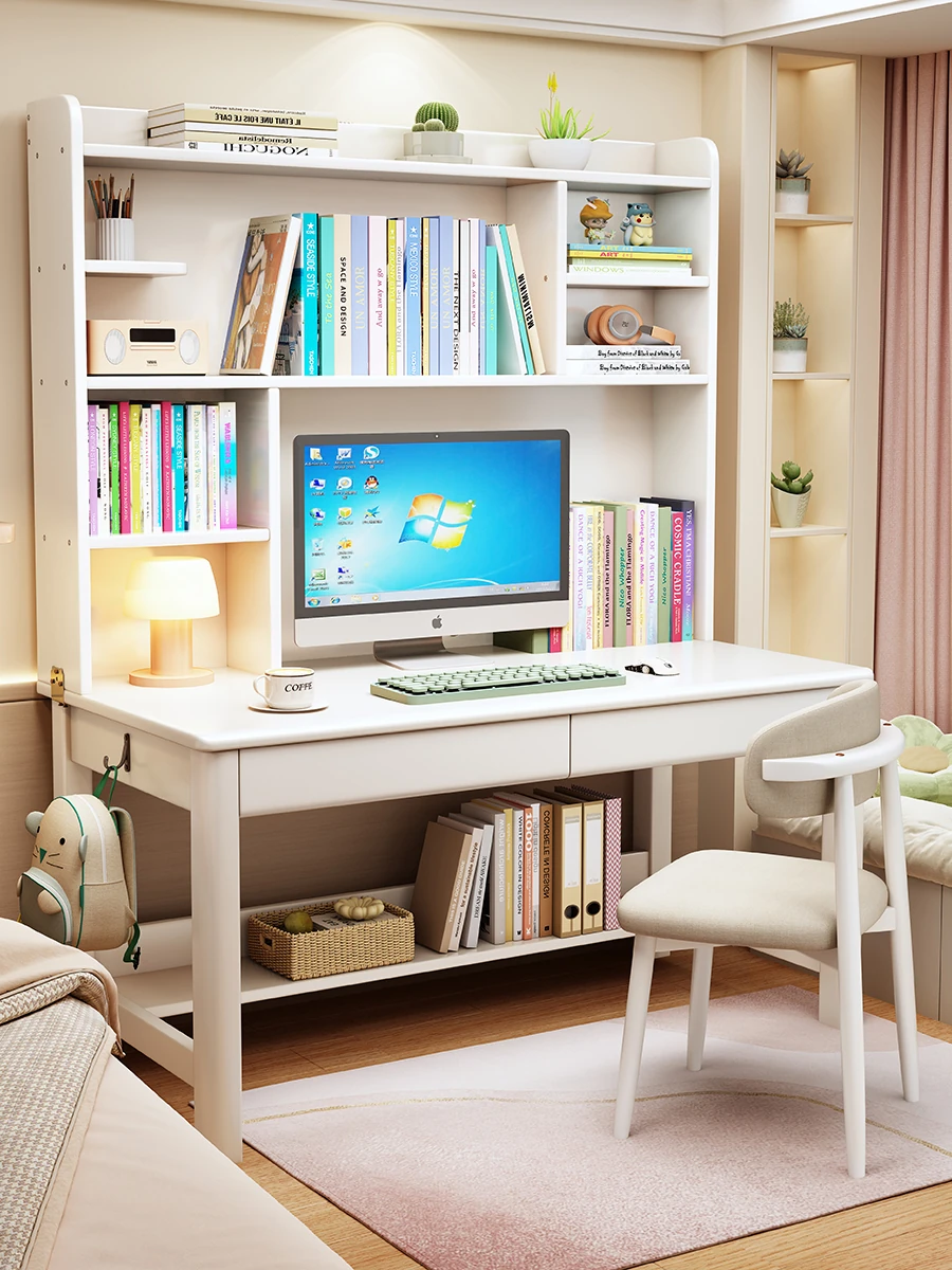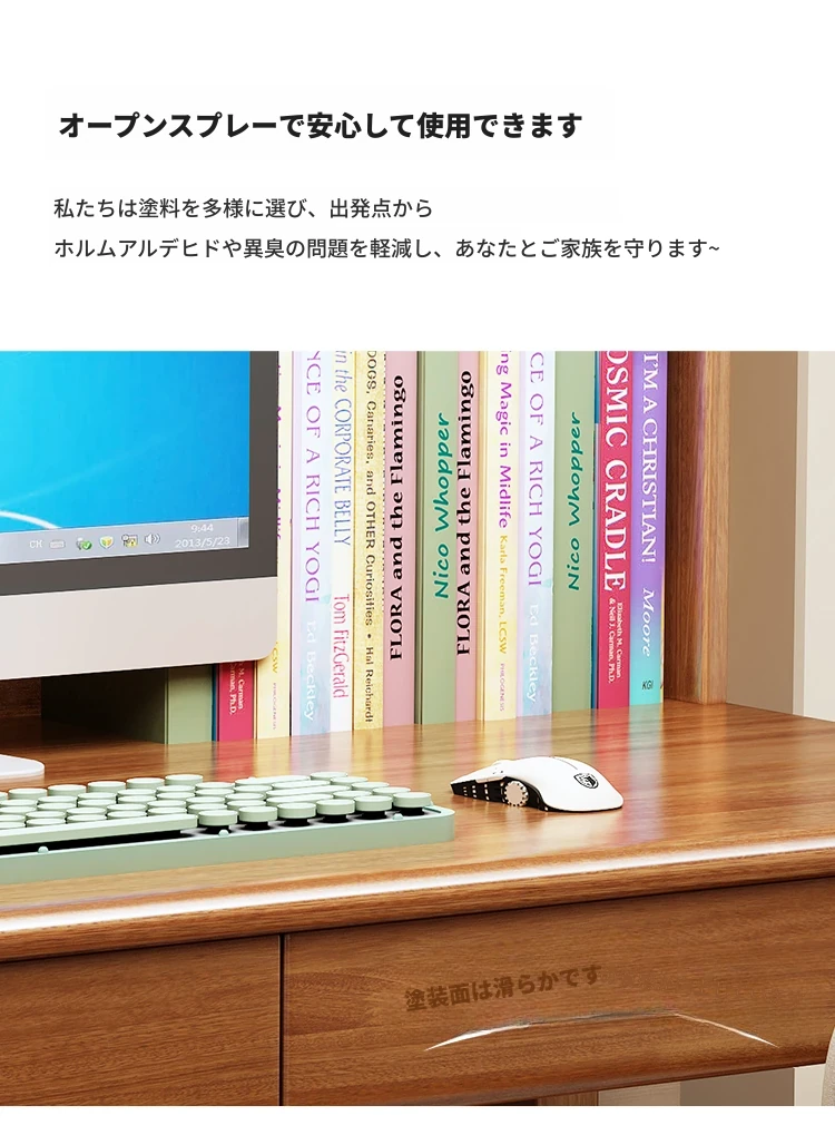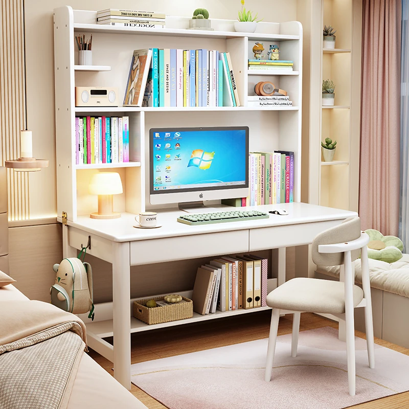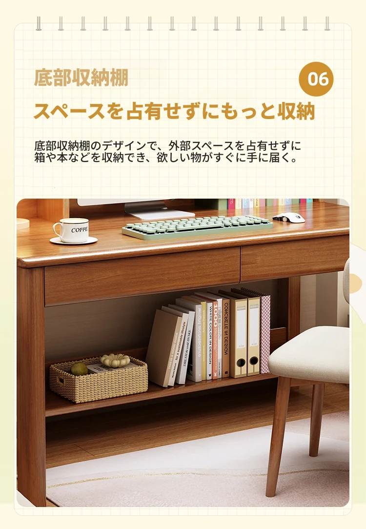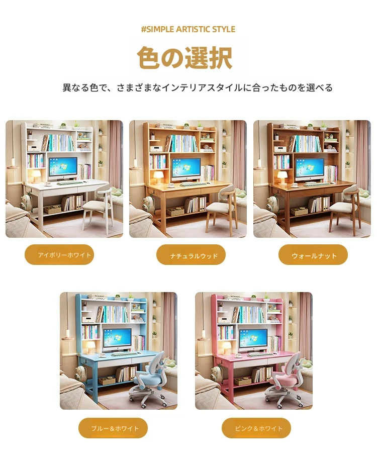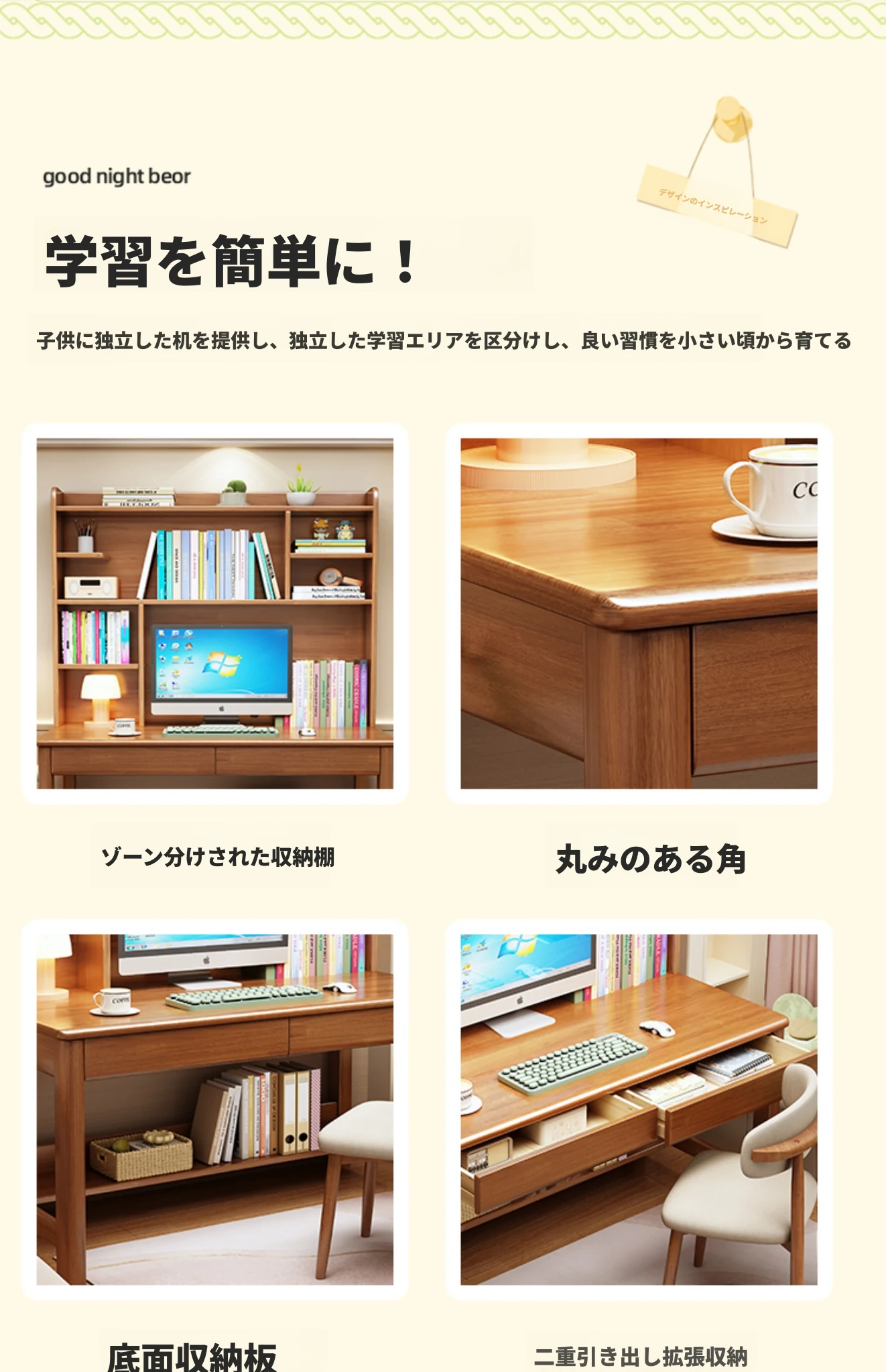 北欧スタイル天然木製学習デスク&シェルフ一体型セット - 学生や家庭用に最適、小スペースにもぴったりの多機能コンピュータデスク