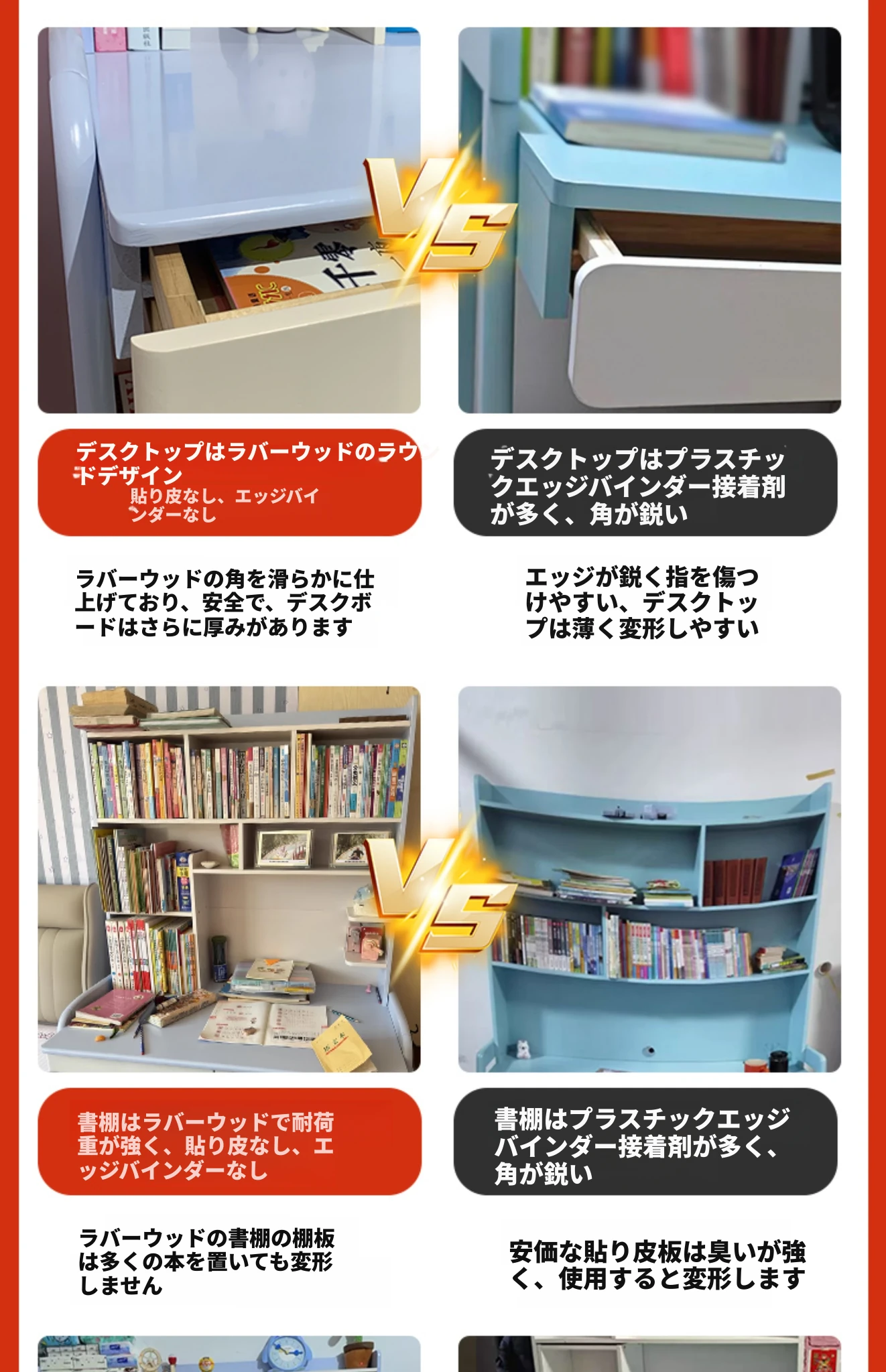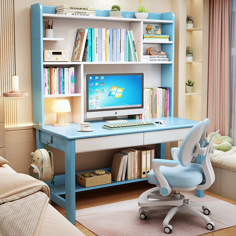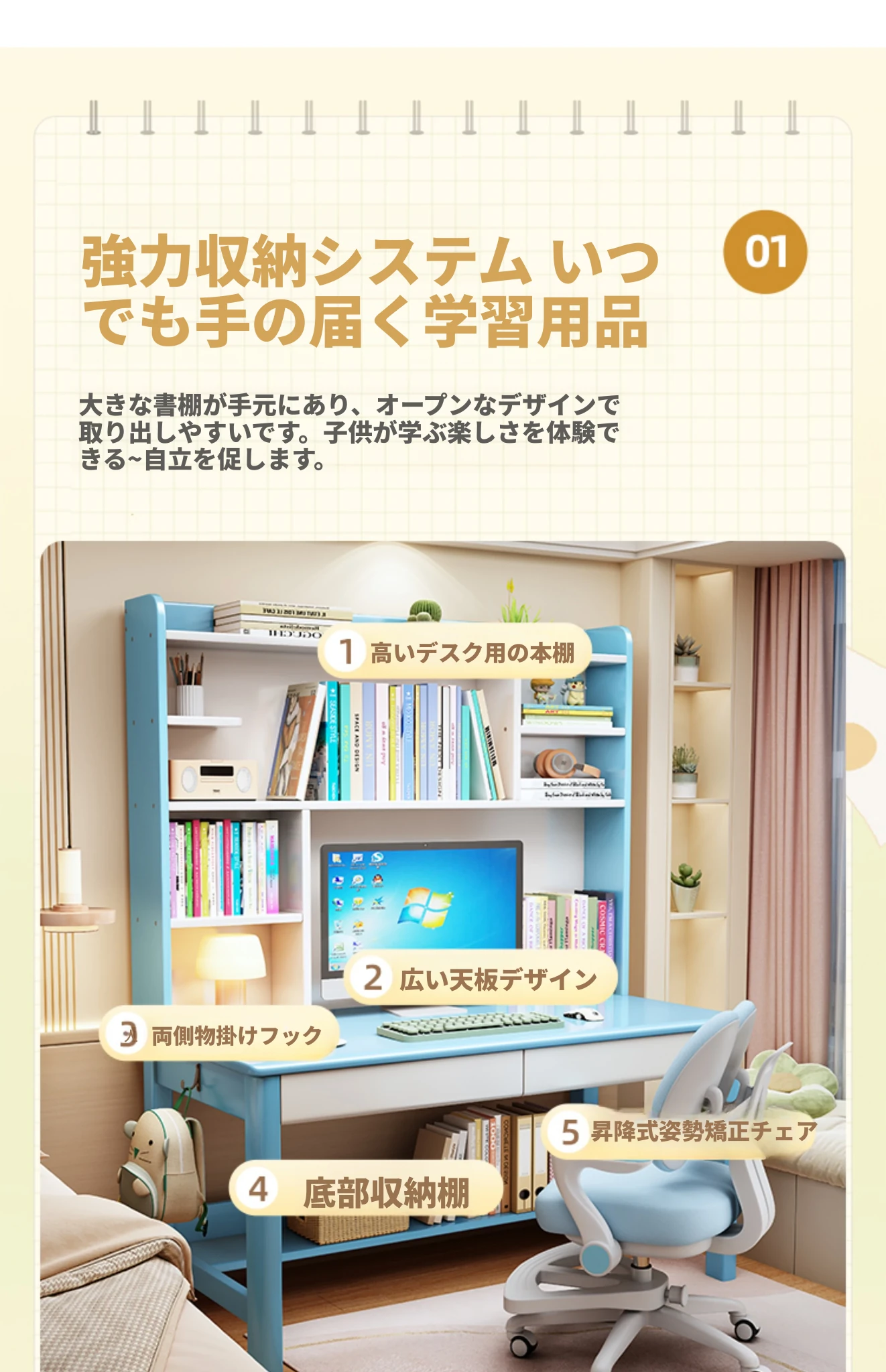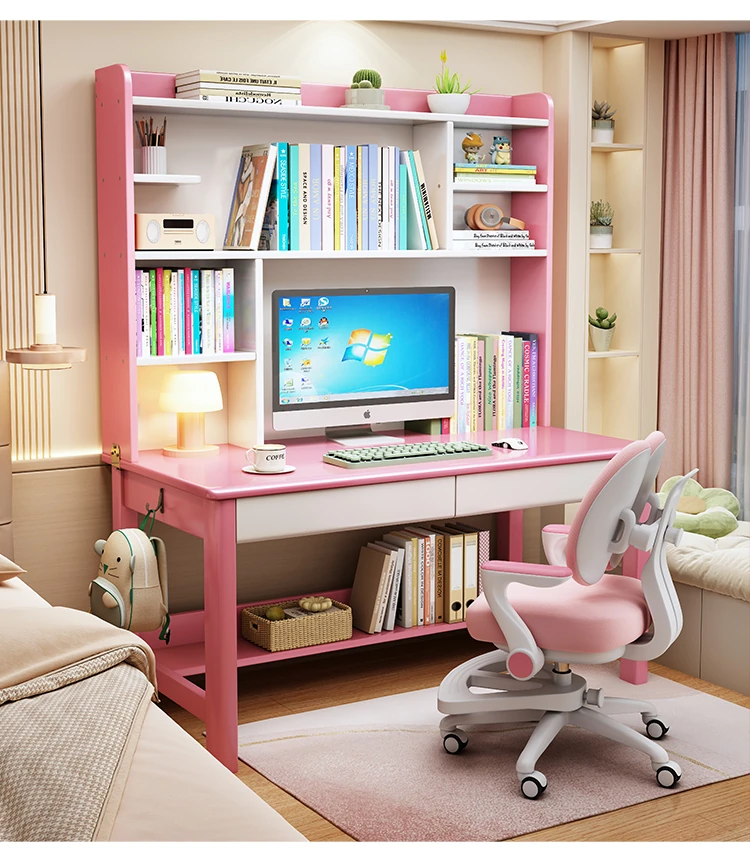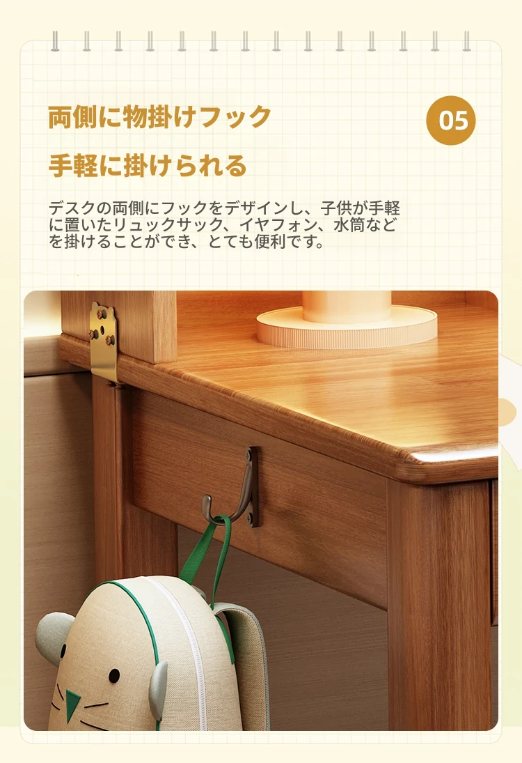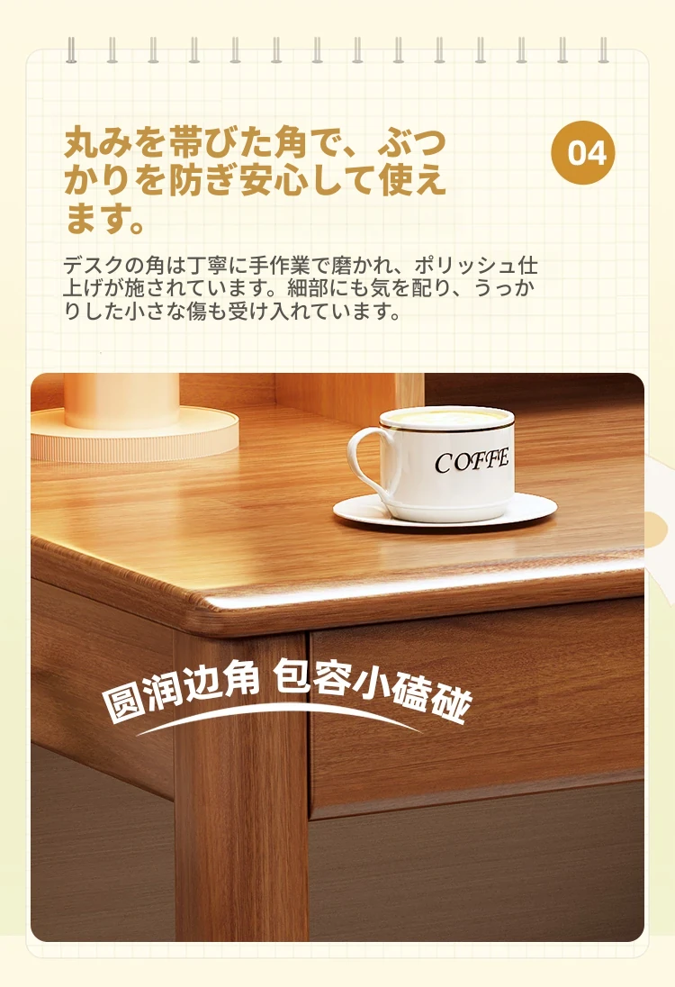 北欧スタイル天然木製学習デスク&シェルフ一体型セット - 学生や家庭用に最適、小スペースにもぴったりの多機能コンピュータデスク