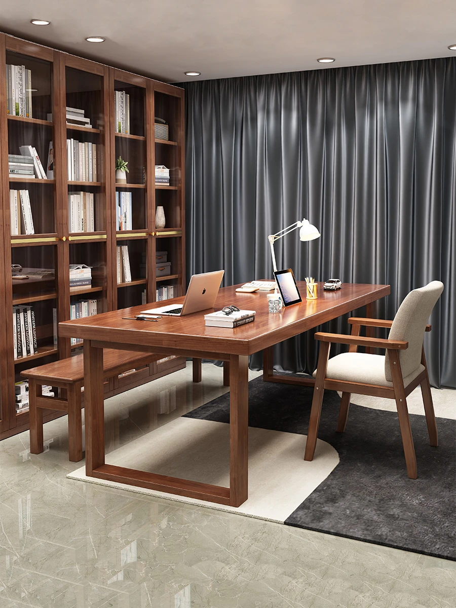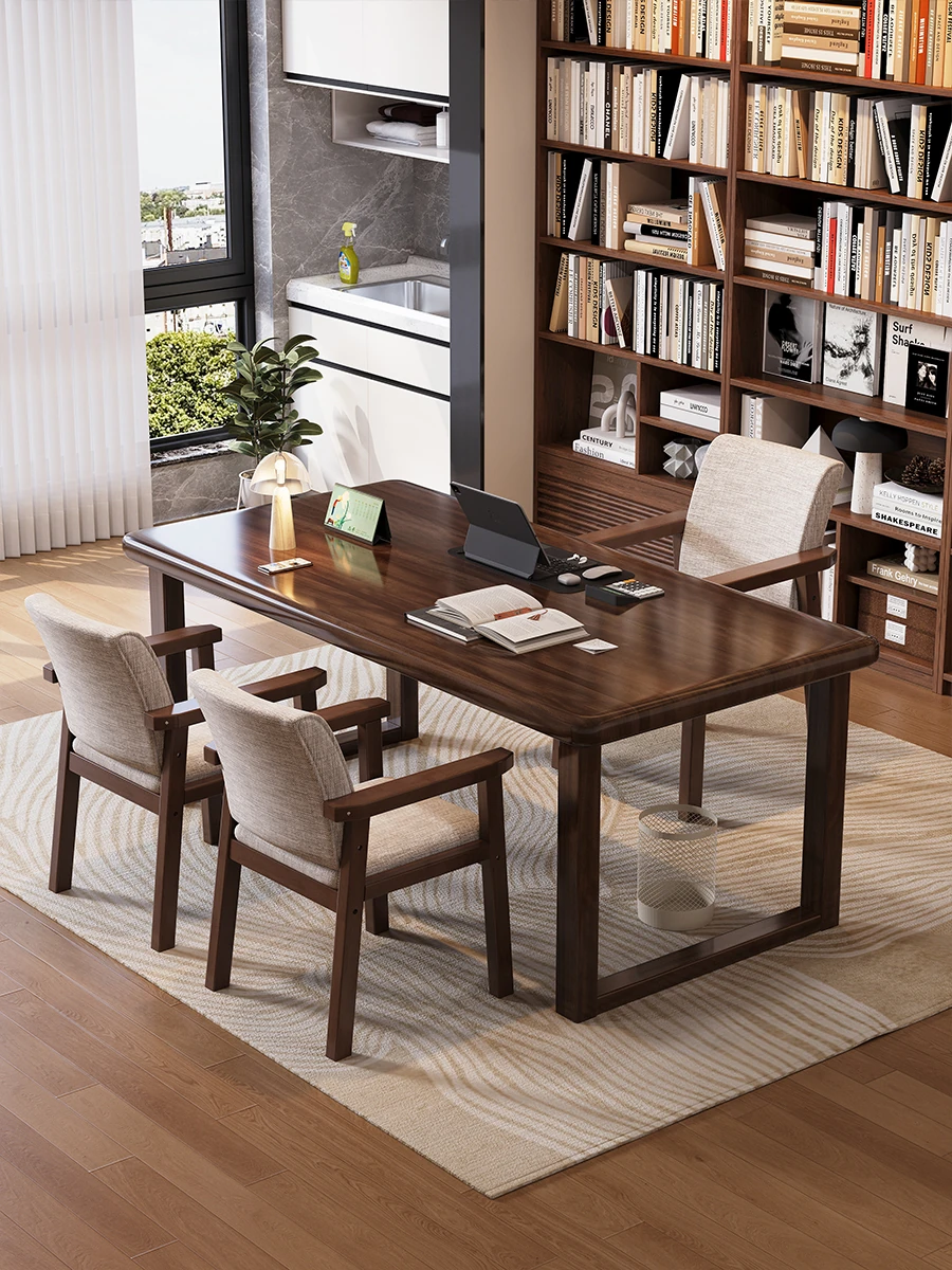 FJXDB01# walnut color table + horn chair(Desktop wood thickness 1.57in])