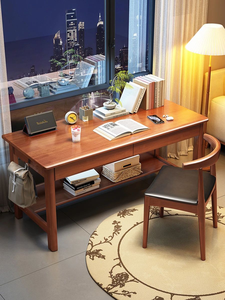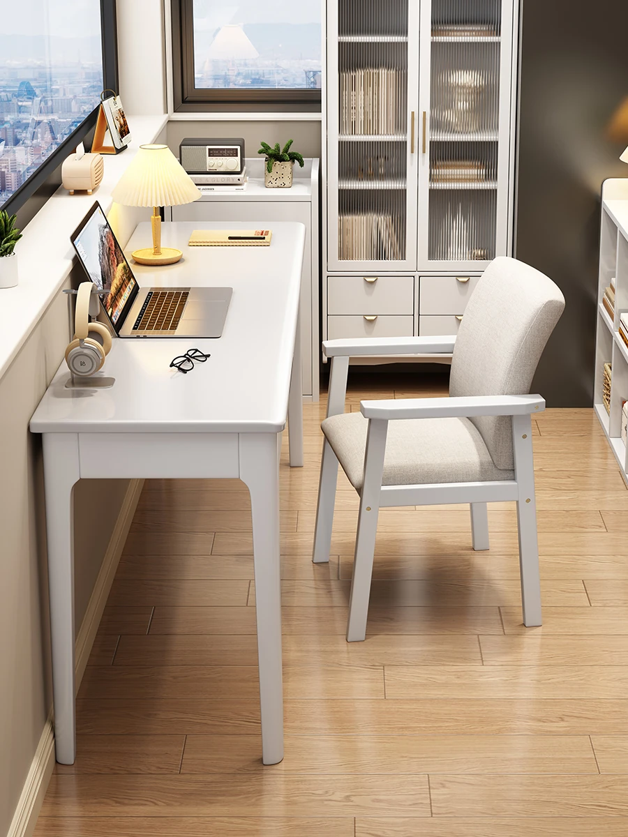 Nordic Solid Wood Writing Desk - Minimalist Workspace Near Window, Simple Office Table, Compact Home Computer Desk for Small Spaces