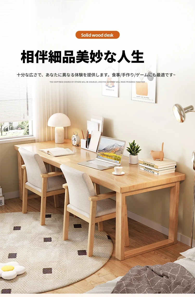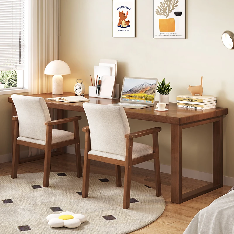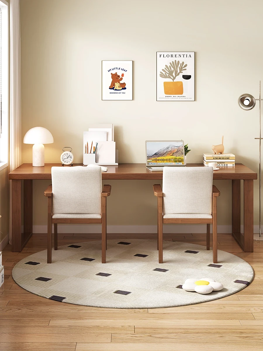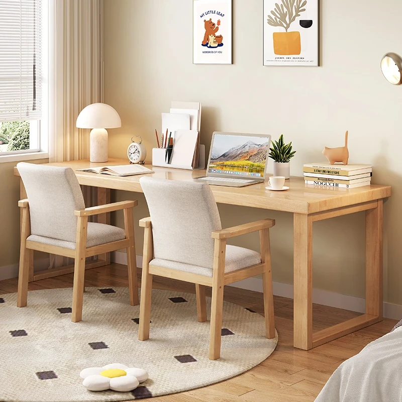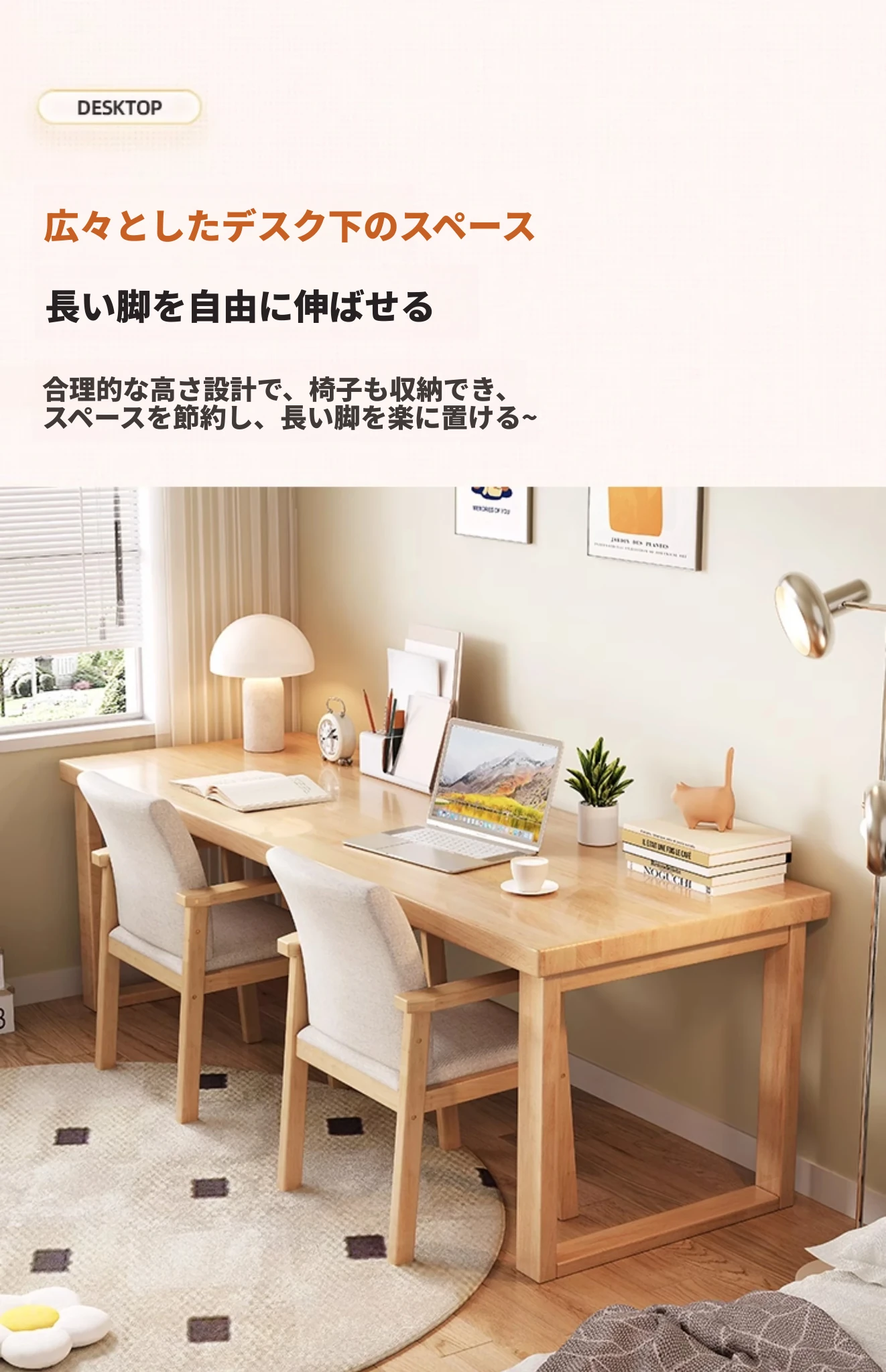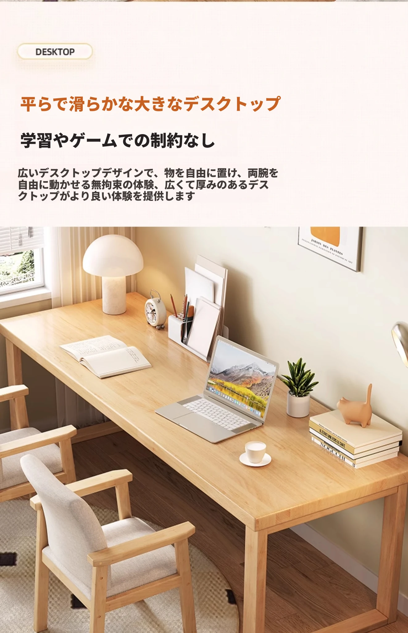 家庭用・スタイリッシュな天然木ダブルワークデスクー多人数対応、リビング&ベッドルームに最適!シンプル設計で快適に作業・学習が可能な大版サイズの長机
