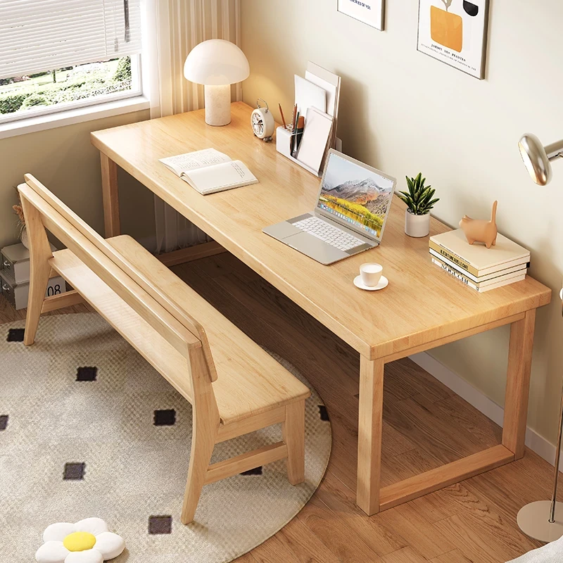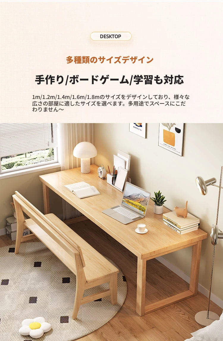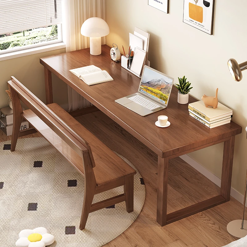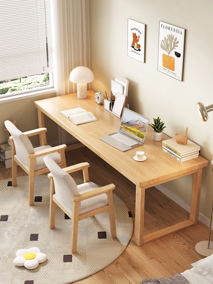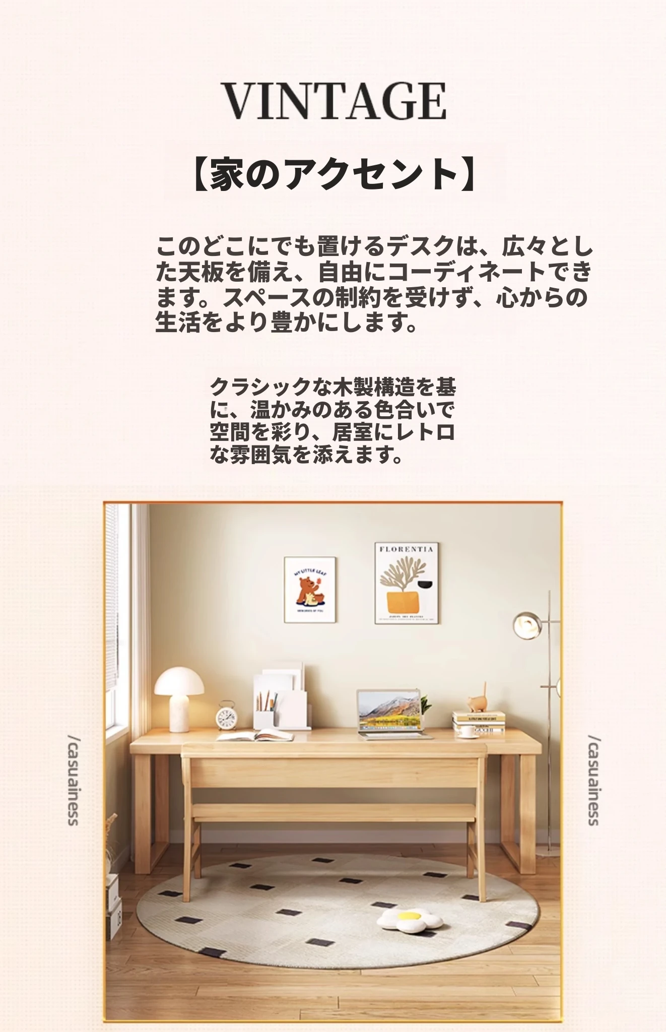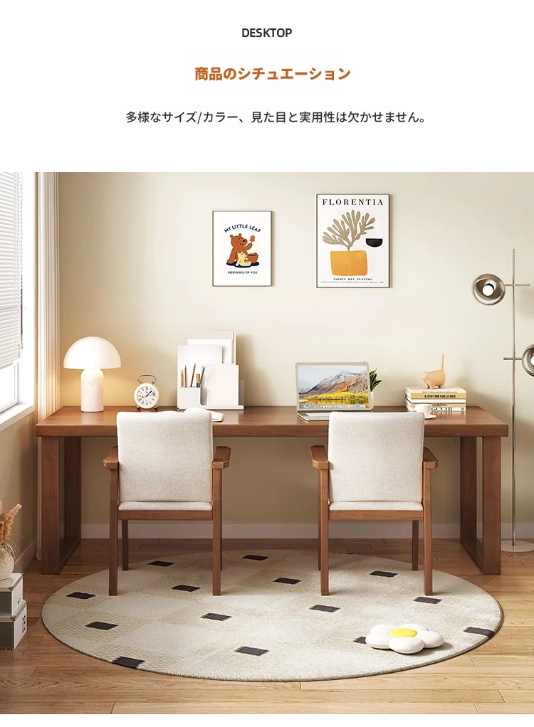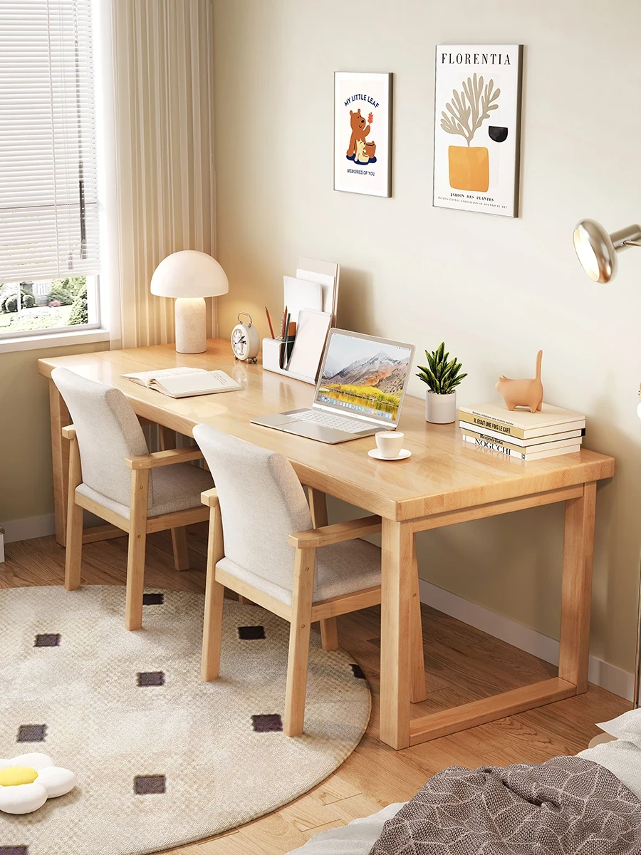 家庭用・スタイリッシュな天然木ダブルワークデスクー多人数対応、リビング&ベッドルームに最適!シンプル設計で快適に作業・学習が可能な大版サイズの長机