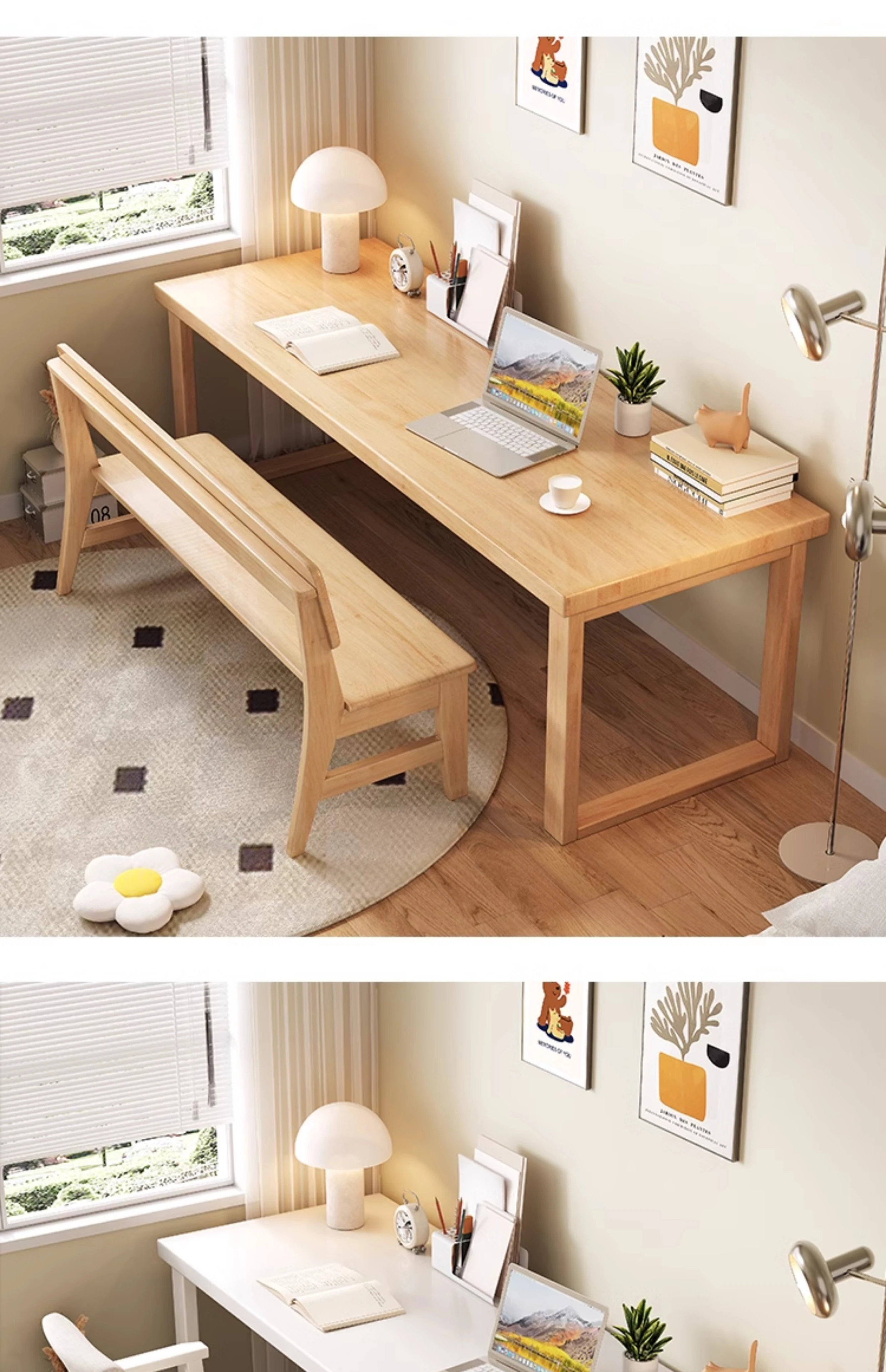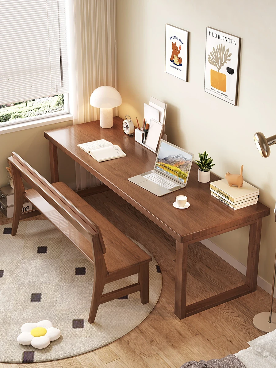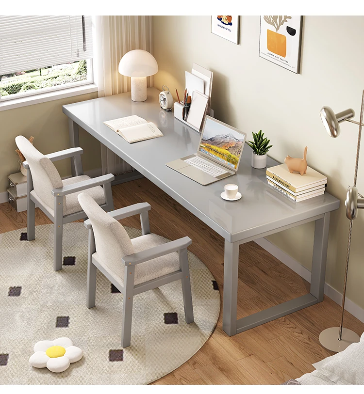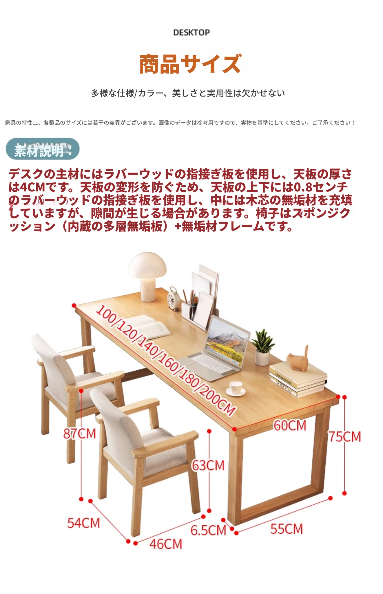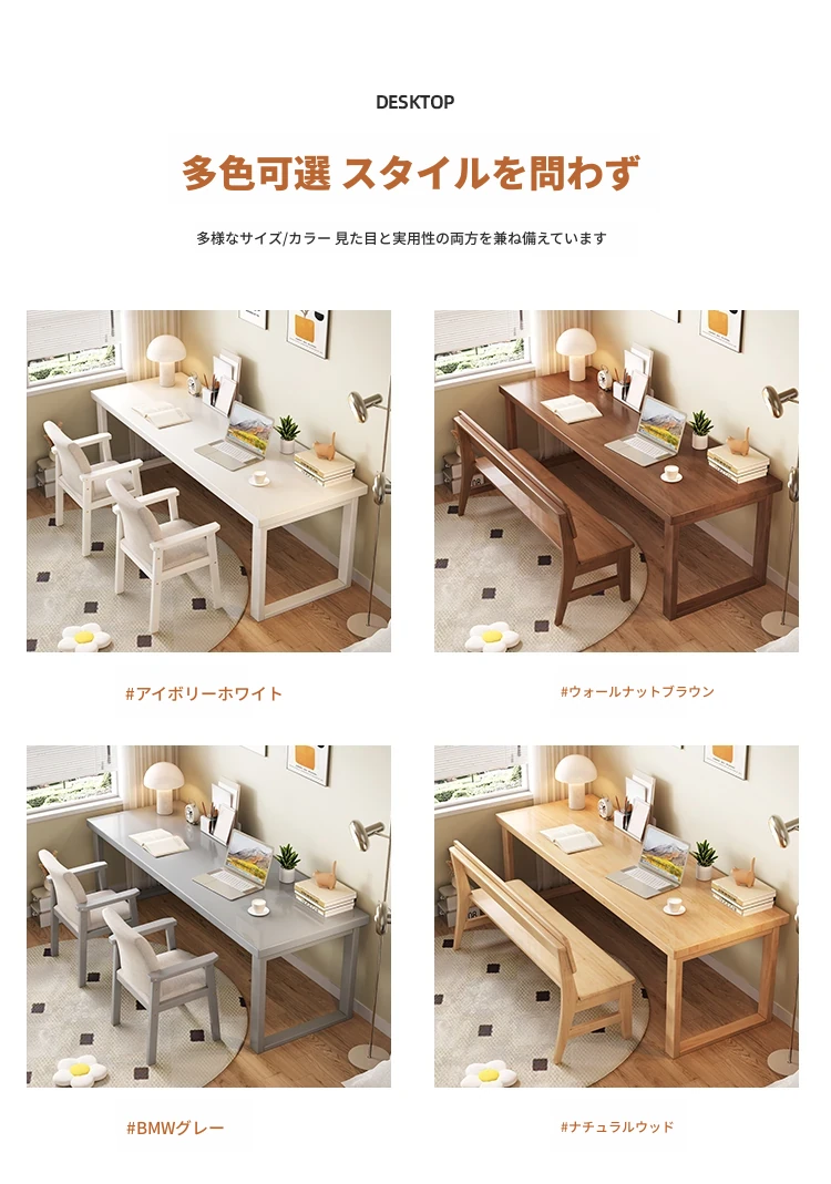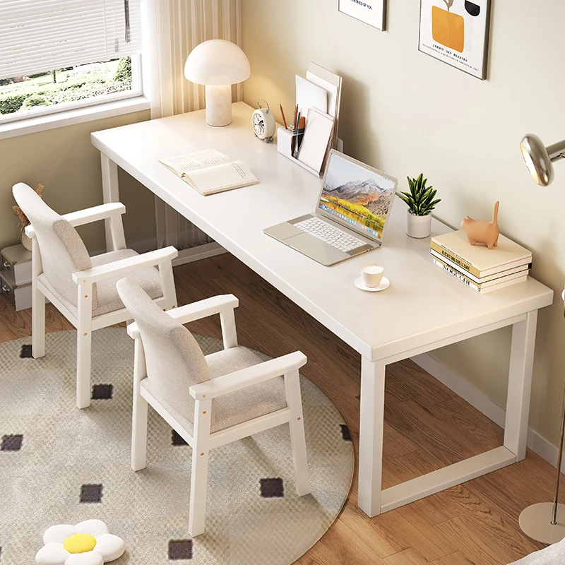 家庭用・スタイリッシュな天然木ダブルワークデスクー多人数対応、リビング&ベッドルームに最適!シンプル設計で快適に作業・学習が可能な大版サイズの長机