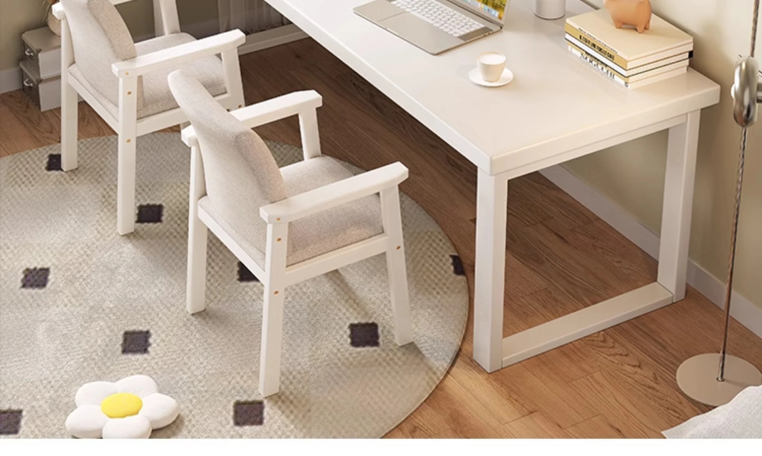 FJXDB01#アイボリーホワイトのテーブル+カーブバックチェア*2 【テーブルトップ木材厚さ4cm】