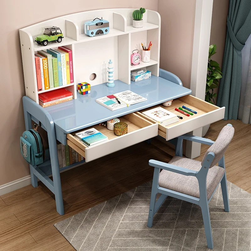 【おすすめ】子ども用可調節式本棚一体型学習デスク - 小中学生向け!天然木製で家庭の寝室にぴったり