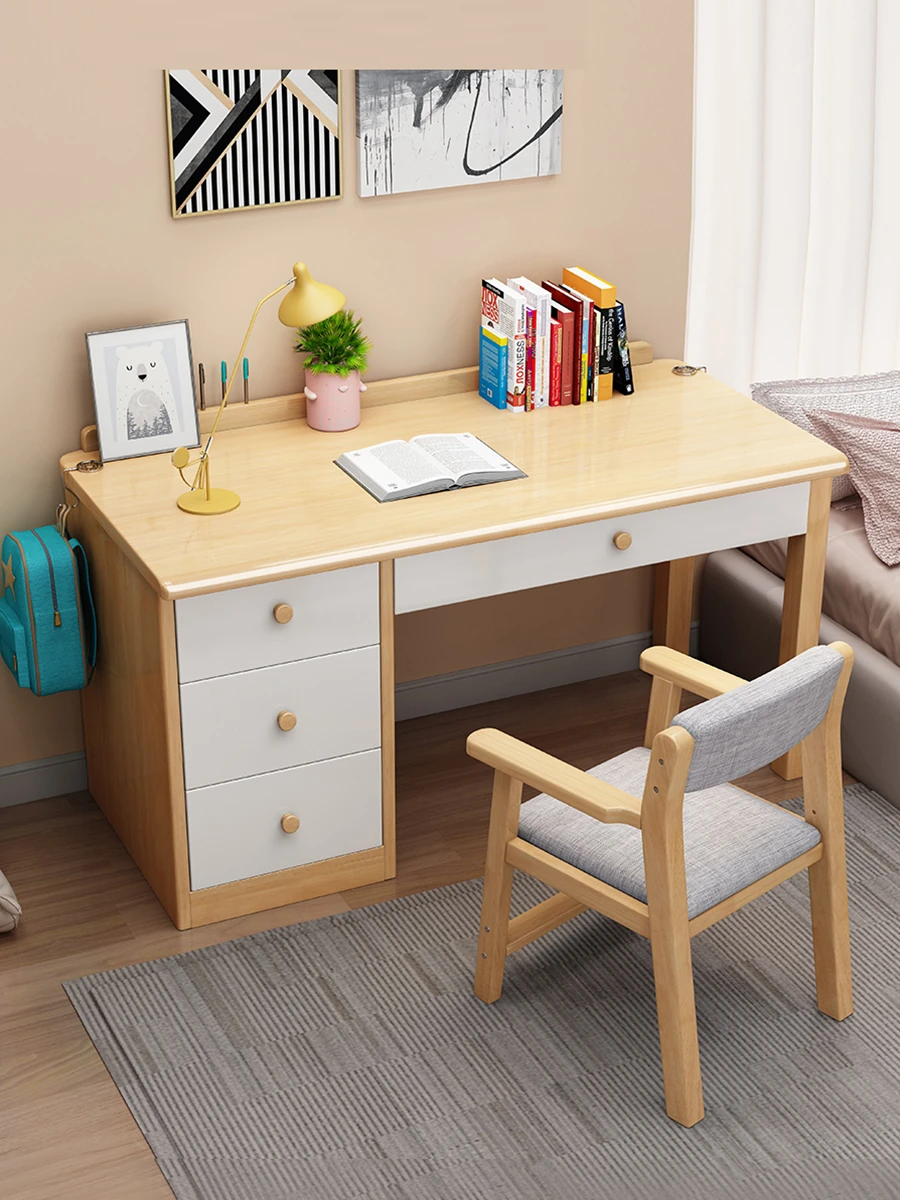 【シンプルでモダンなスタイル】- 天然木製パソコンデスク:家庭の寝室や子供部屋に最適!小中学生の学習や作業に理想的な書斎デスク。